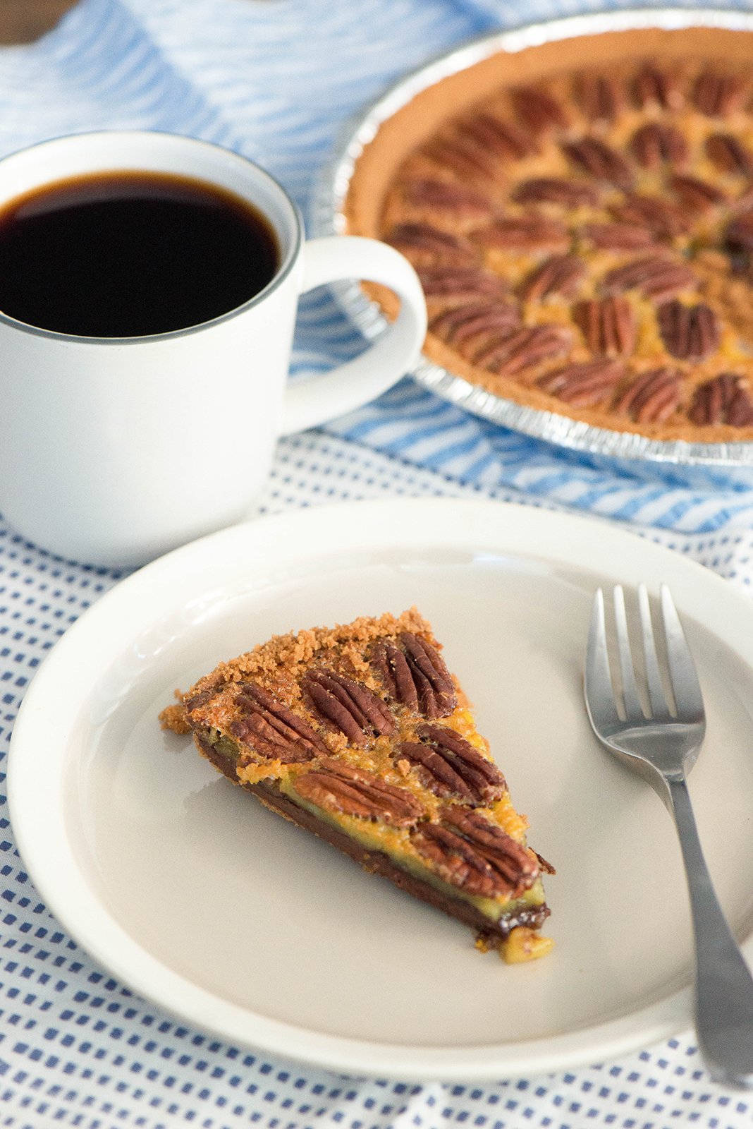 Because this Christmas will be different than all the rest, I’ve decided to make a pie I’ve never made before: Chocolate pecan pie. The crust for this particular pie is very important. A good, thick graham crust is needed to balance out the layer of chocolate and pecan mixture in this recipe.
