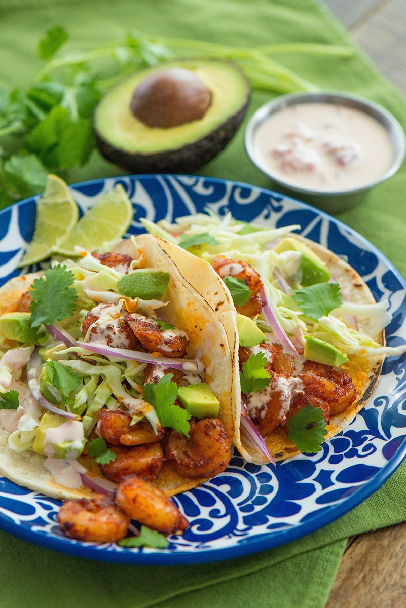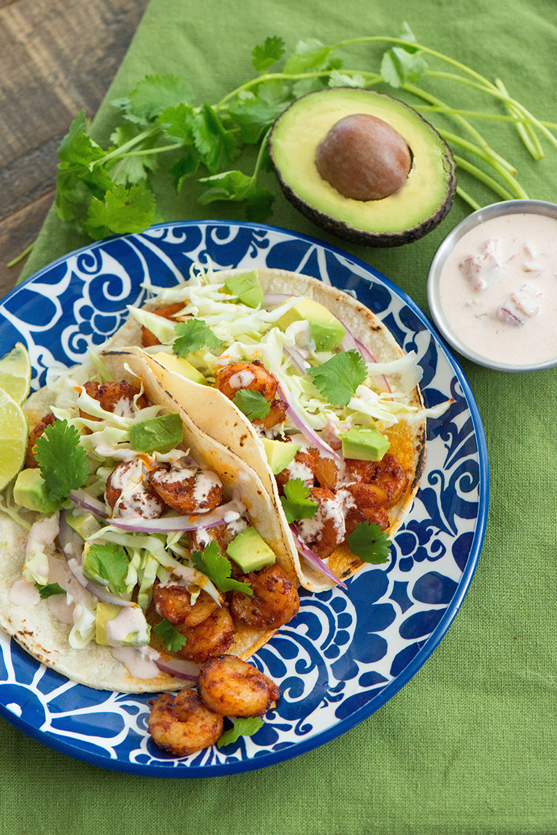 Chili Lime Shrimp Tacos with Creamy Salsa