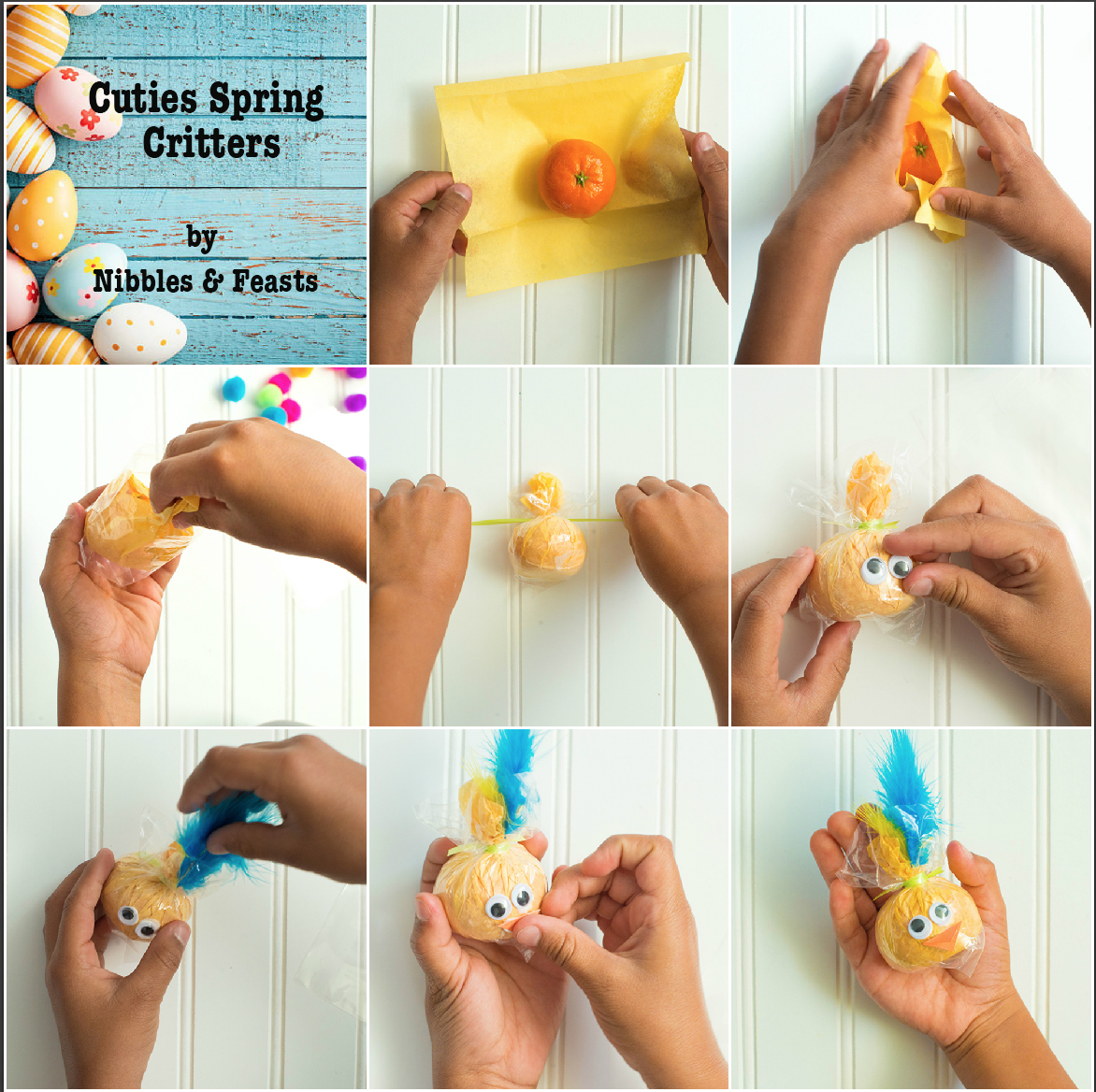 Make this fun and tasty craft snack with your kids. Supplies are available at your local craft store. You can decorate them as much as you want but ultimately, you want to make it easy for little hands to unwrap and enjoy the real prize: a juice Cuties Mandarin.