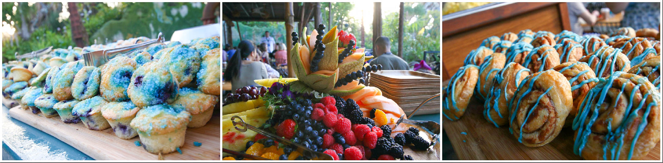 Our breakfast was buffet style with exotic fruits and Na’vi blue pastries to go along with the theme. The restaurant serves a variety of bowls inspired by Pandora’s bounty. The meals are wholesome and made up of grains, vegetables and proteins.