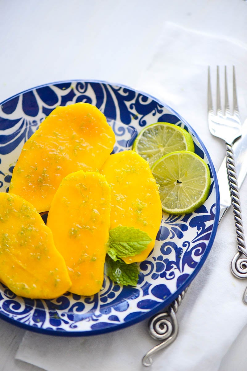In the streets of Latin America, mangoes are sold peeled on a stick, sprinkled with chili powder and squeeze of fresh lime juice. It’s a popular and healthy after-school snack enjoyed by kids as they walk home.