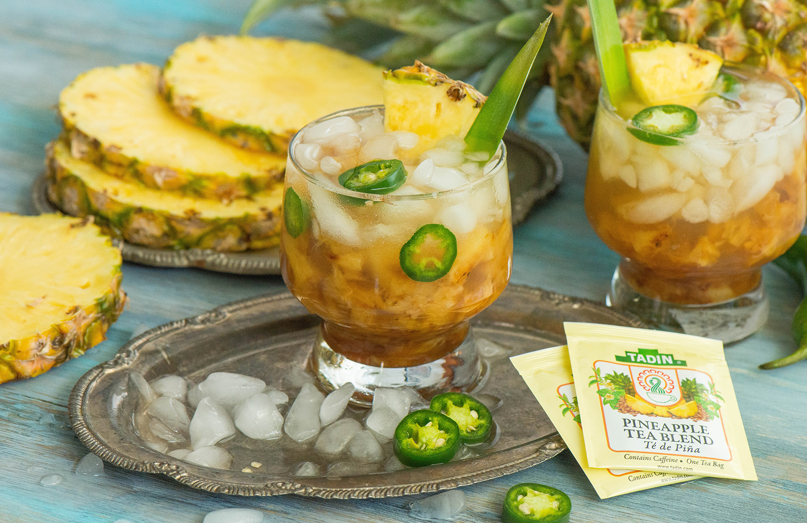 When I discovered that Tadin Teas has a Pineapple Tea Blend I had to try it as an iced tea. This time, I took the blend a little further and added a spicy kick of fresh jalapeños and chunks of grilled pinapple for texture and sweetness.