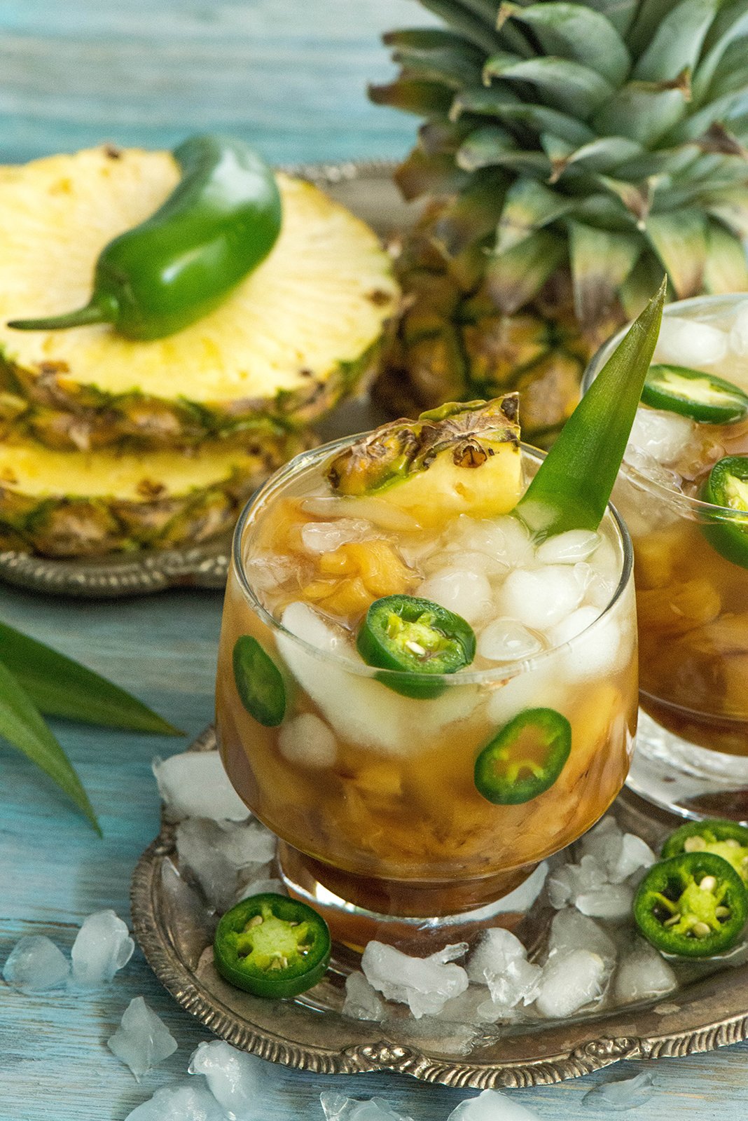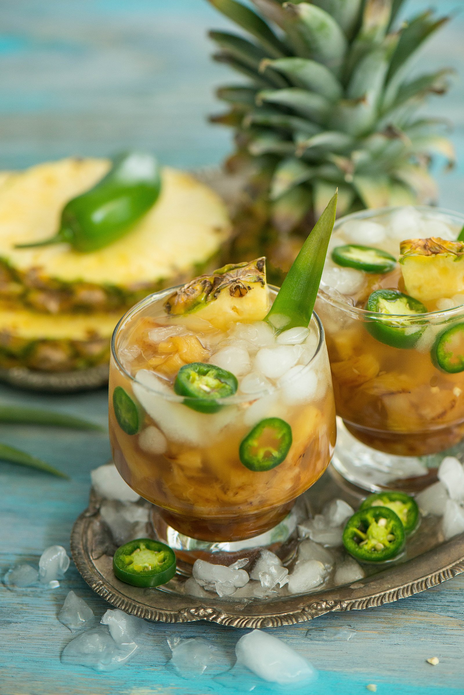 - Serve over ice. Garnish with fresh pineapple and more jalapeño slices.