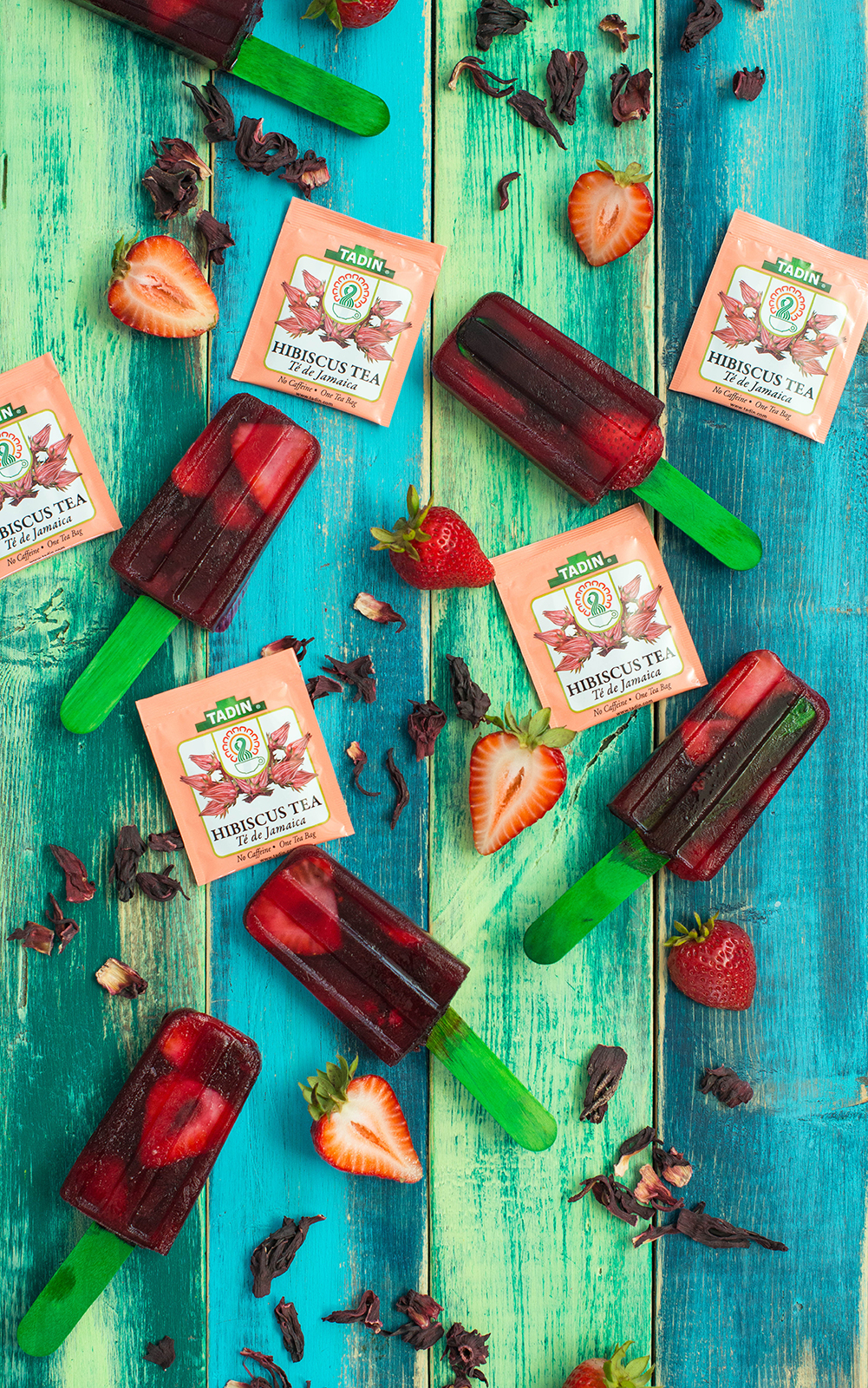 To save a little time in the preparation, I used Tadin Hibiscus Tea bags. The process is easy. If you know how to make tea, then you know how to prep this hibiscus tea into a sweet syrup for your frozen treats. It’s simple and less messy than steeping whole hibiscus blooms. Concentrated hibiscus tea can stain countertops and clothes if you’re not careful. The tea bags make it a easy to just steep and discard.