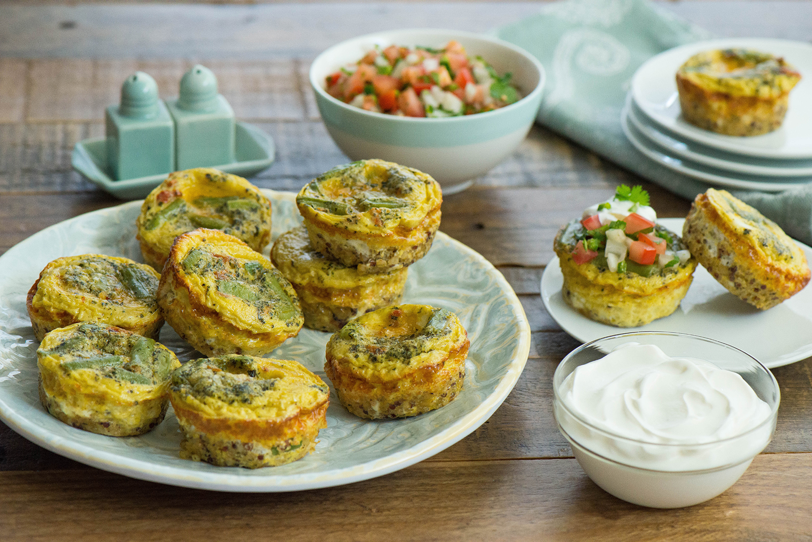 - Serve frittatas with pico de gallo and a dollop of sour cream.