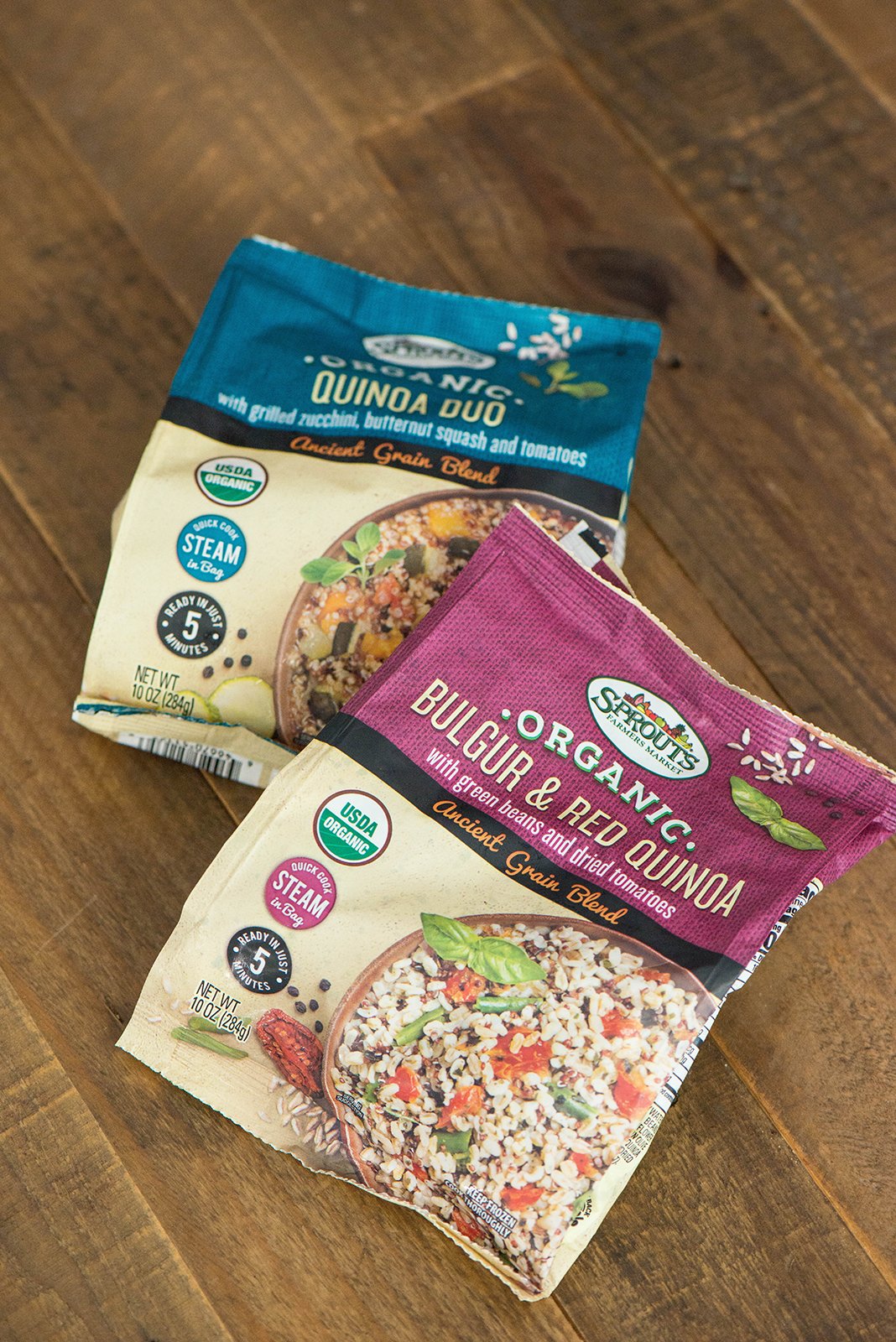 - 1 package Sprouts Ancient Grain Blend Bulgur & Red Quinoa with Green Beans and Dried Tomatoes