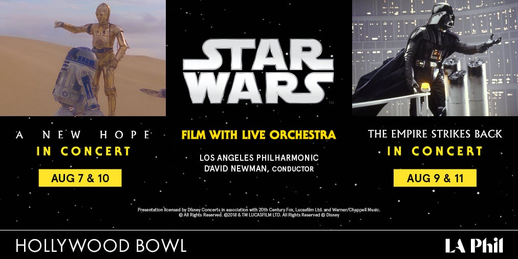 Whether you’re a Star Wars fan or not, you will enjoy the beautiful sounds of the Los Angeles Philharmonic under the night sky. We are guaranteed great weather and lots of Star Wars character sightings. Those are always fun.