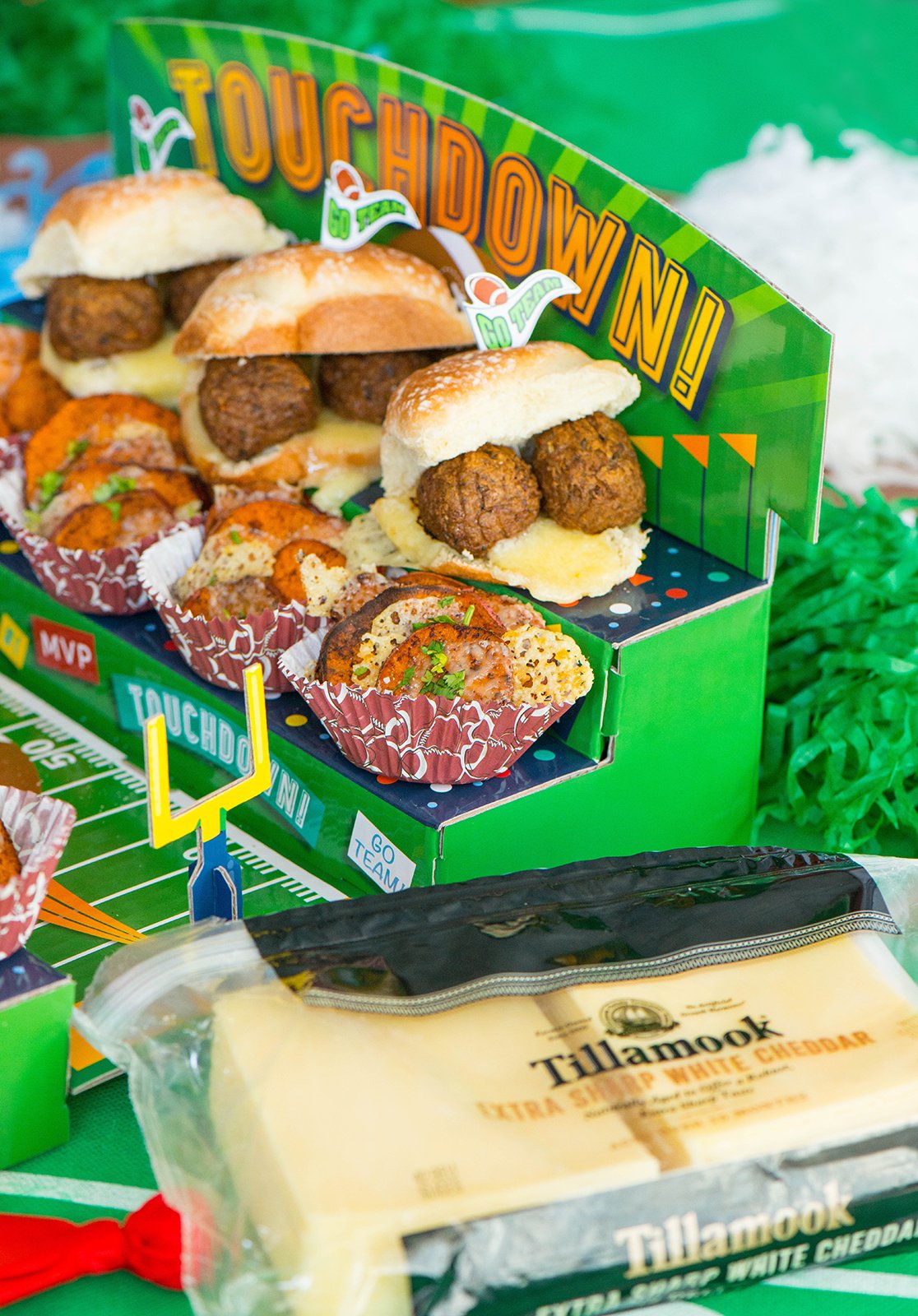 Made with only three simple ingredients and then naturally aged for 15 months to achieve tangy perfection, Tillamook’s creamy yet robust Extra Sharp White Cheddar Slices are the perfect addition to my veggie meatball sliders and baked sweet potato chipotle cheesy chips.
