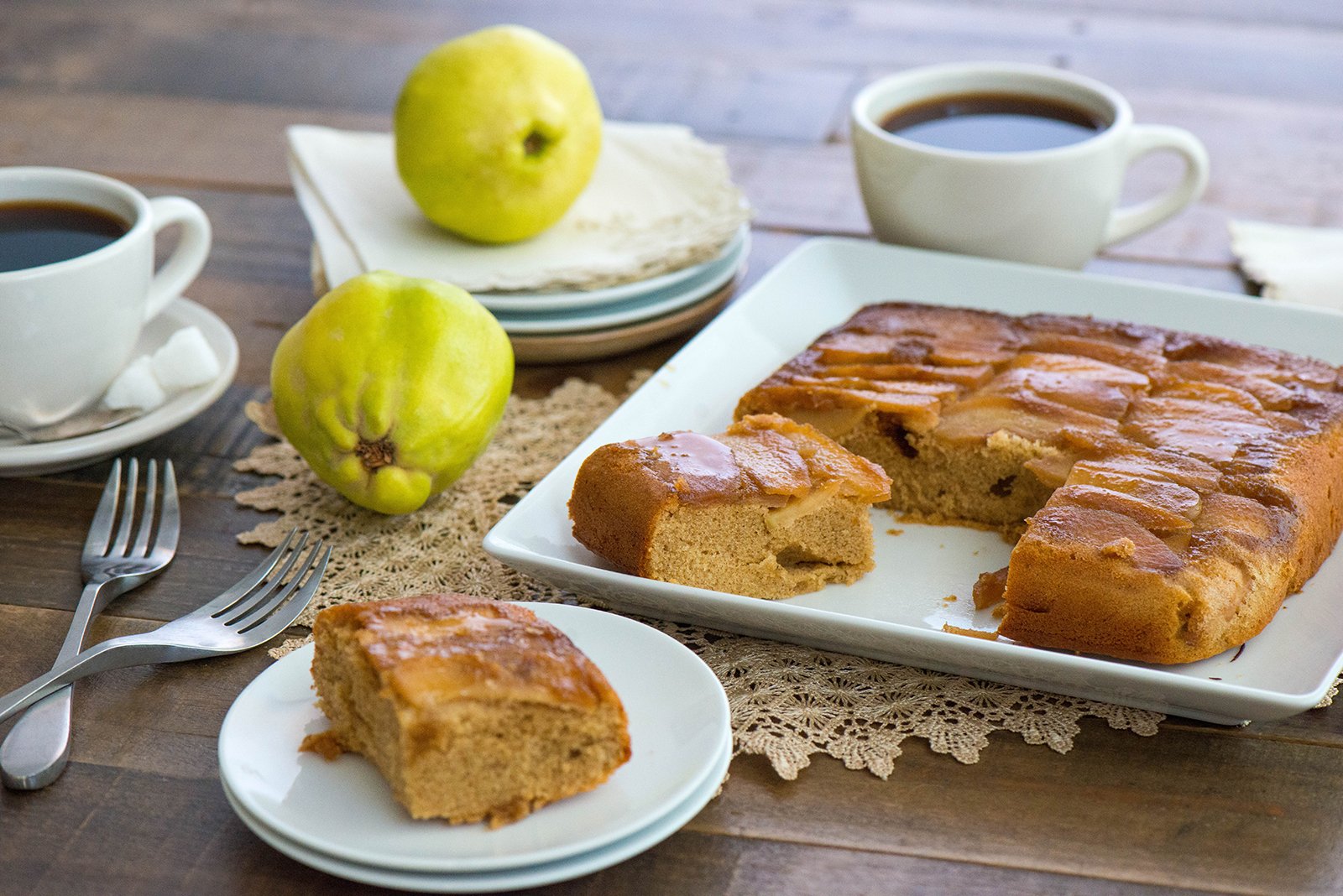 Fall is here! Sit back and relax with a sweet slice of Upside Down Quince Cake