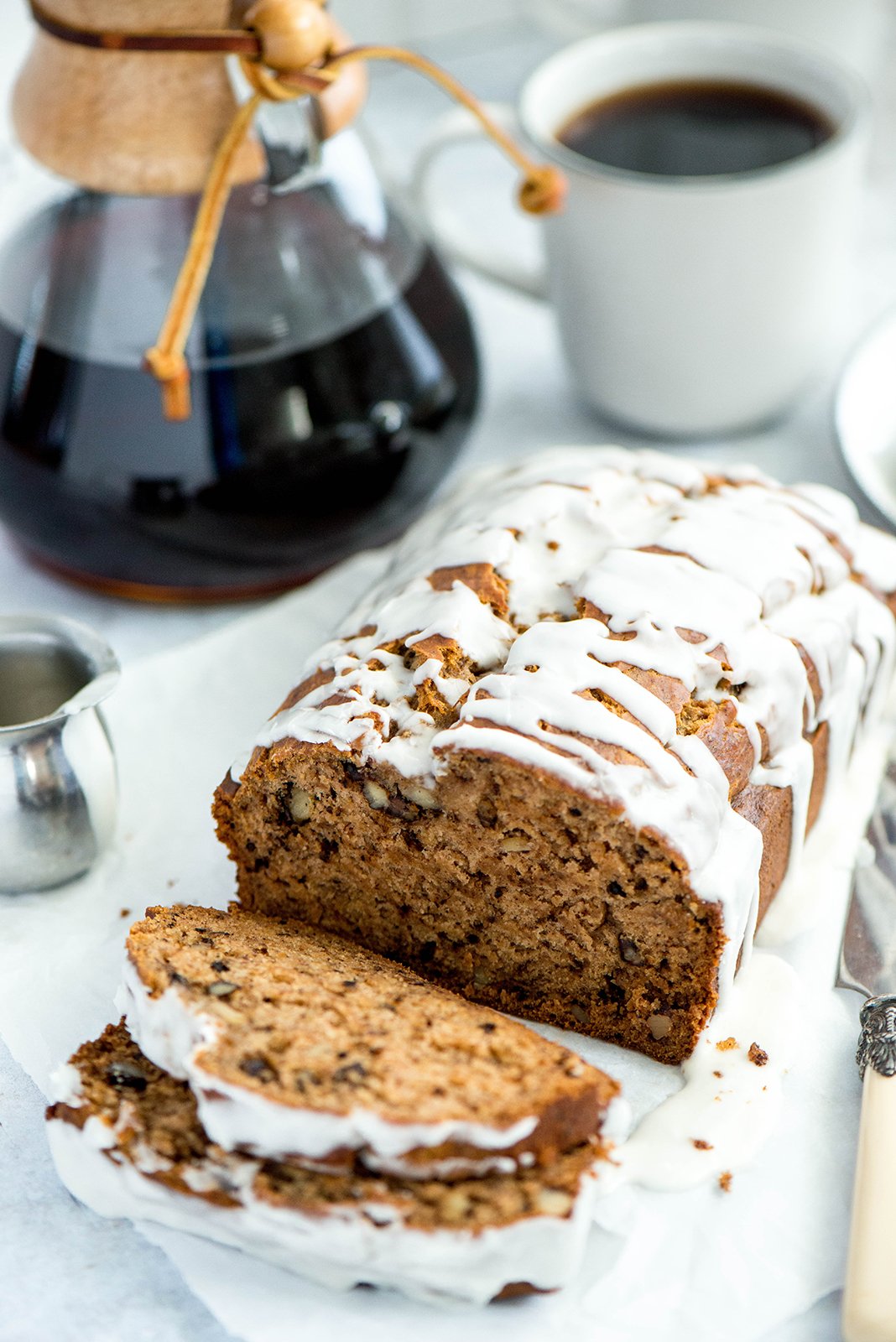 Ready in about an hour, this coffee hour accompaniment will wow your coffee break friends with a hint of sweet and dark, spicy rum. Yes, the rum is IN the bread AND IN the glaze.