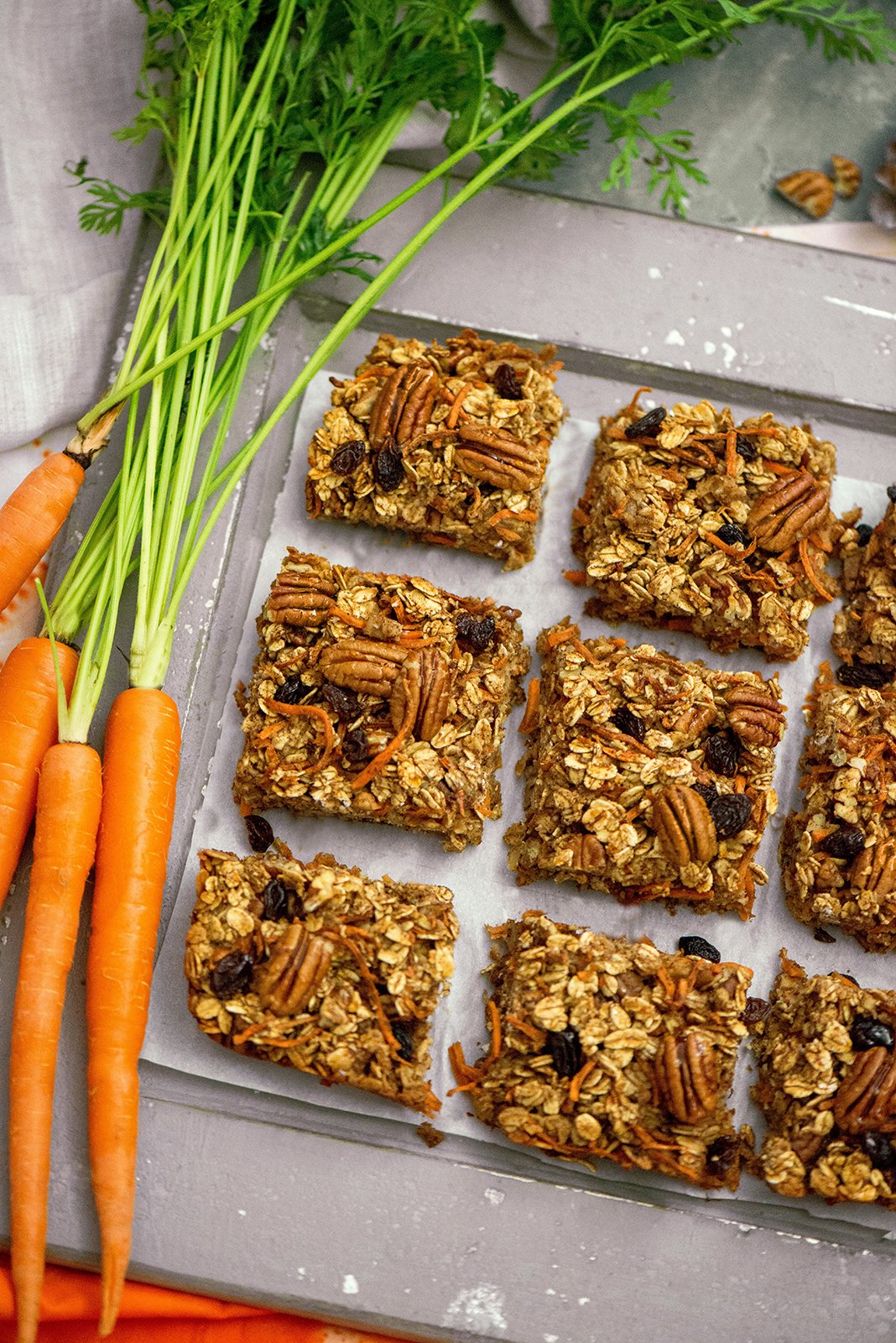 Skip the store bought bars. Make your very own baked oatmeal carrot bars