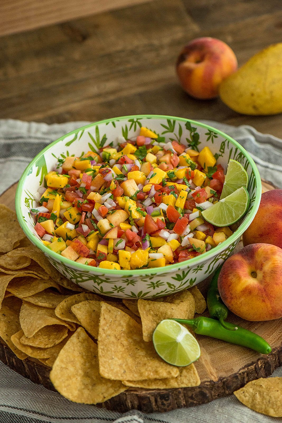 When peaches and mangos are in season, it’s time to make salsa! This flavor combination will be the talk of your outdoor get together.
