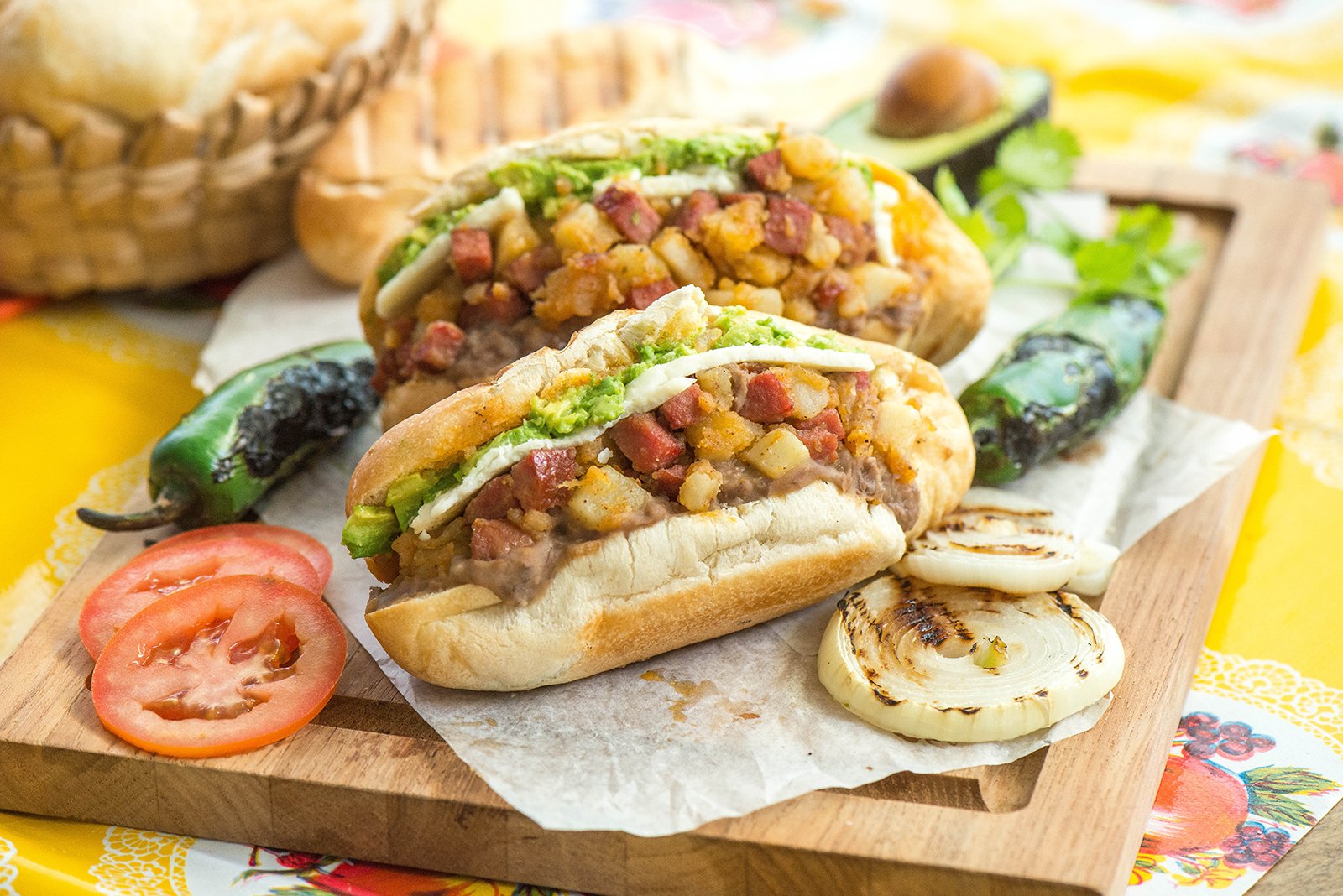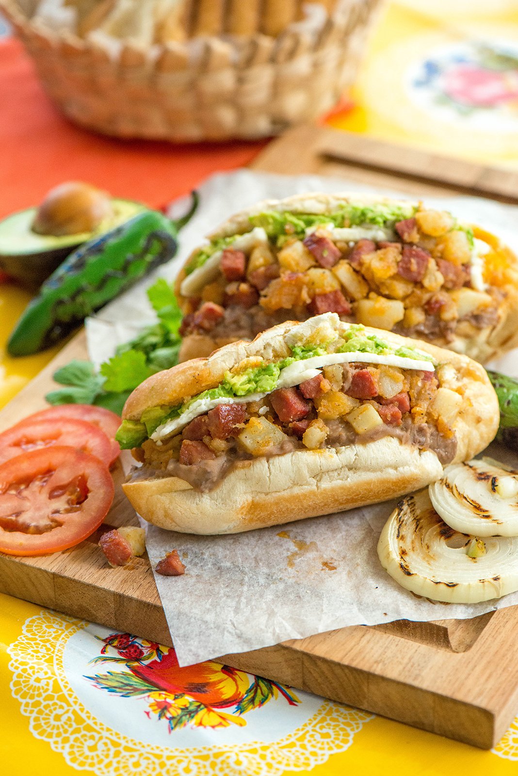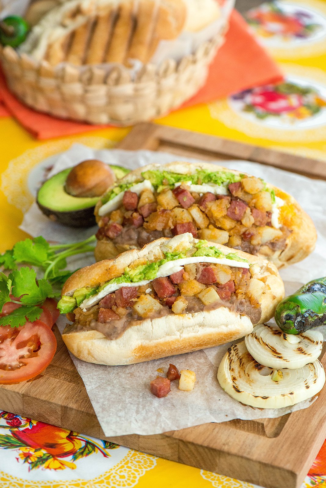 In order to persuade taco lovers into jumping on this bandwagon, I made this AMAZING torta with Sprouts Farmers Market smoked beef sausage, potatoes, refried beans, avocado and queso fresco. Need I say more?