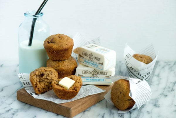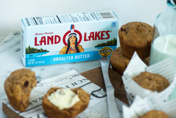 These delicious “any-time” muffins are made with Land O Lakes® Unsalted Butter. It is the very first sweet cream butter. It is the perfect all-purpose butter that improves the taste of everything. Plus, every stick comes wrapped in a FlavorProtect® Wrapper to protect the dairy flavor.
