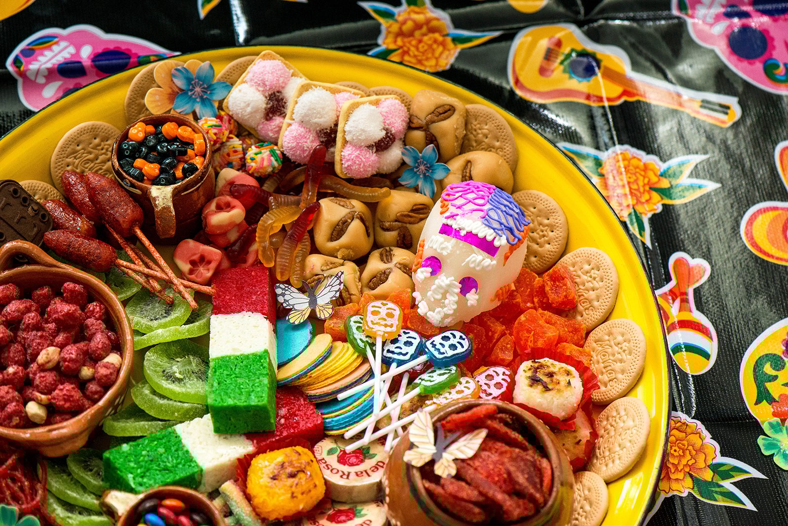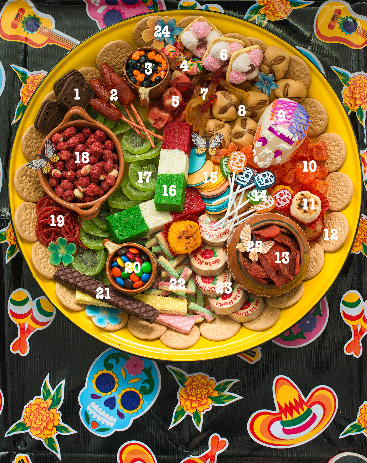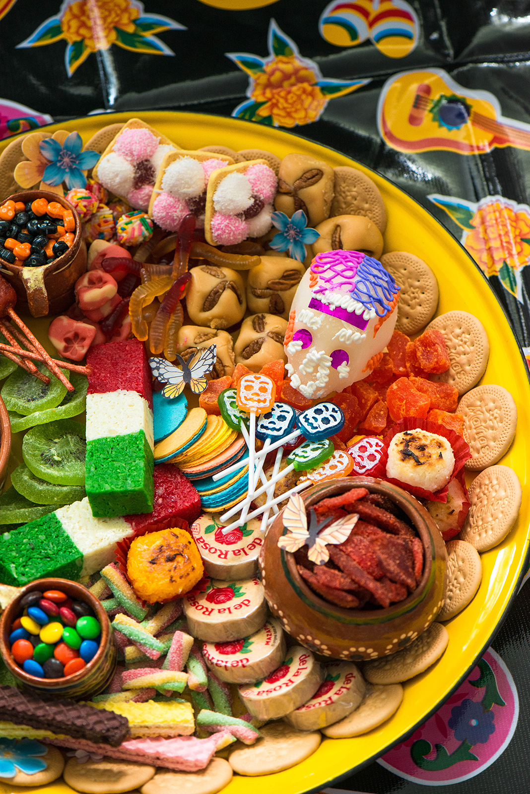 Don’t forget to include some classic favorites like mazapan and M&M’s for your chocolate lovers. Find skeleton or sugar skull themed candies and gummy worms to go with the theme. Those are always fun.