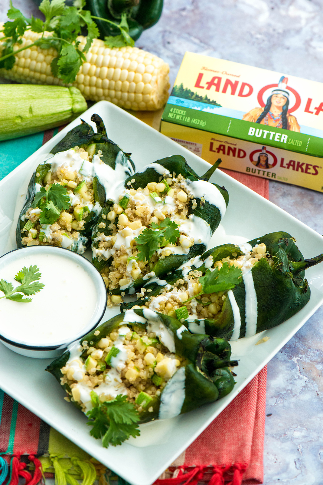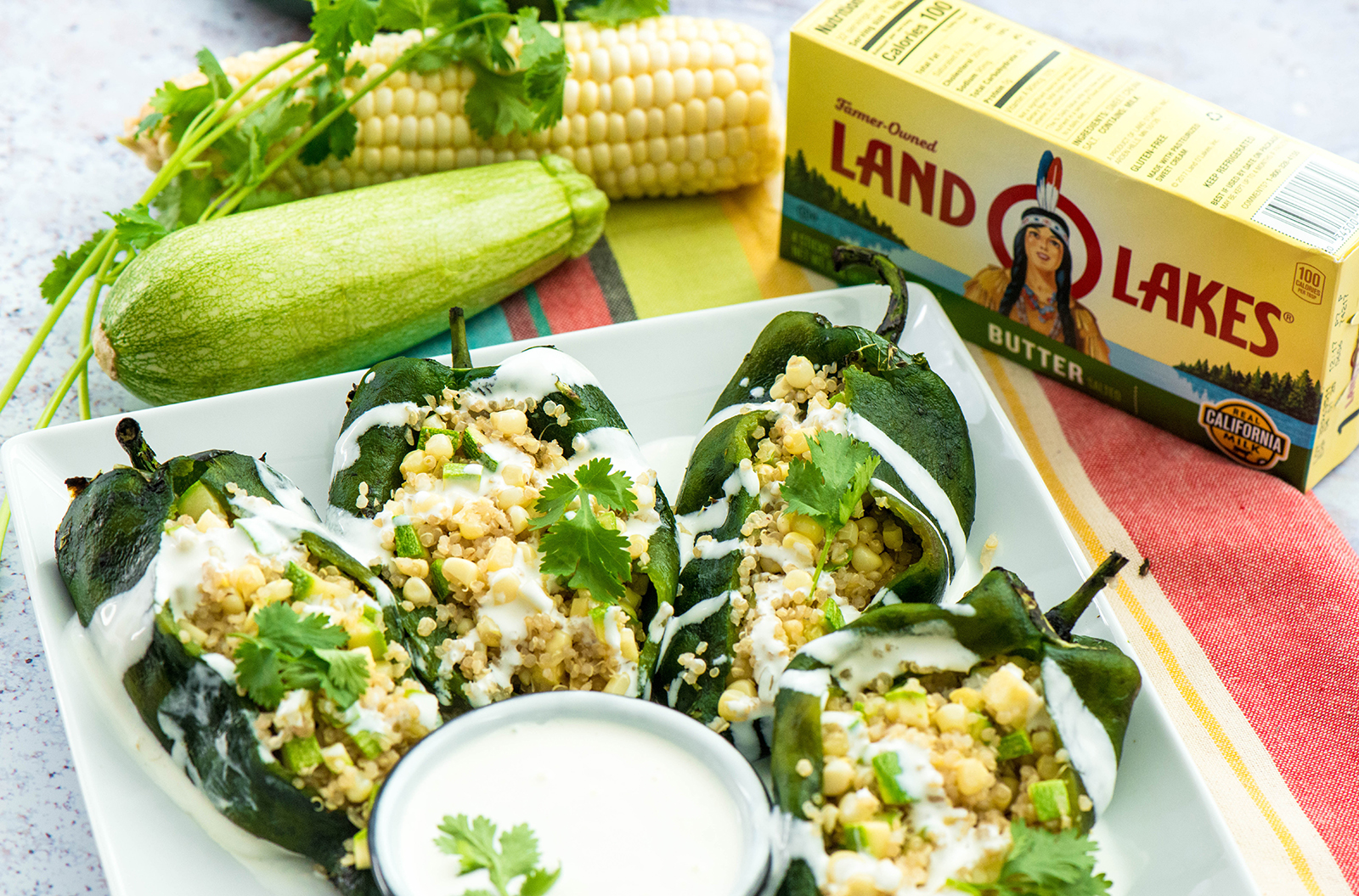 On the other hand, chiles rellenos that are not battered and only roasted can be considered an “often” food. They can be stuffed with veggies and your favorite grains. Cheese is optional. I like to cook the vegetable and grain filling with Land O Lakes® Butter. Using butter to cook onion and garlic brings out the most delicious flavor, not to mention a divine aroma in the kitchen.