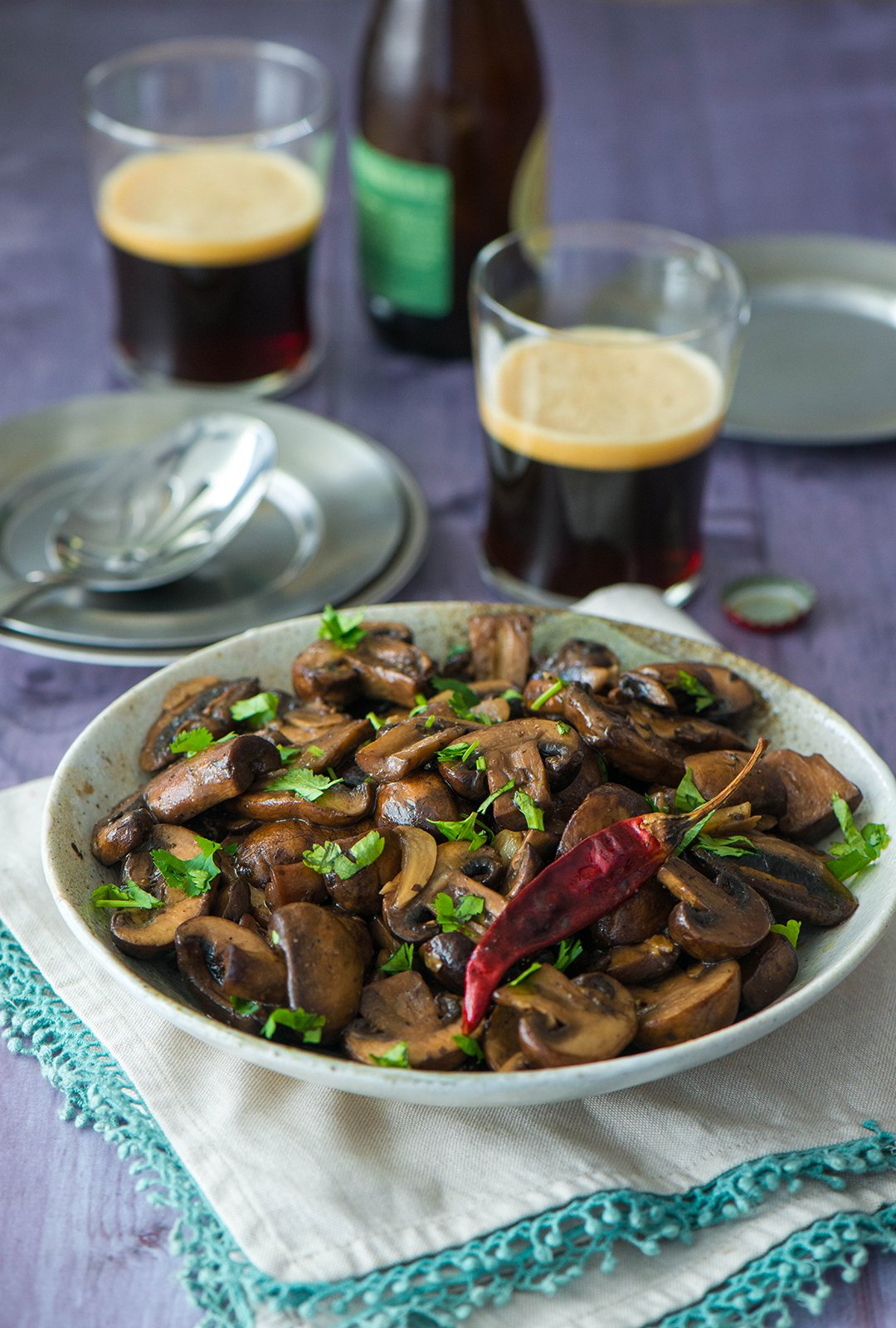 Lightly fried and slightly spicy. These tender mushrooms can be served as an appetizer or a side dish. Make them with your favorite mushroom and serve it with a strong dark beer.