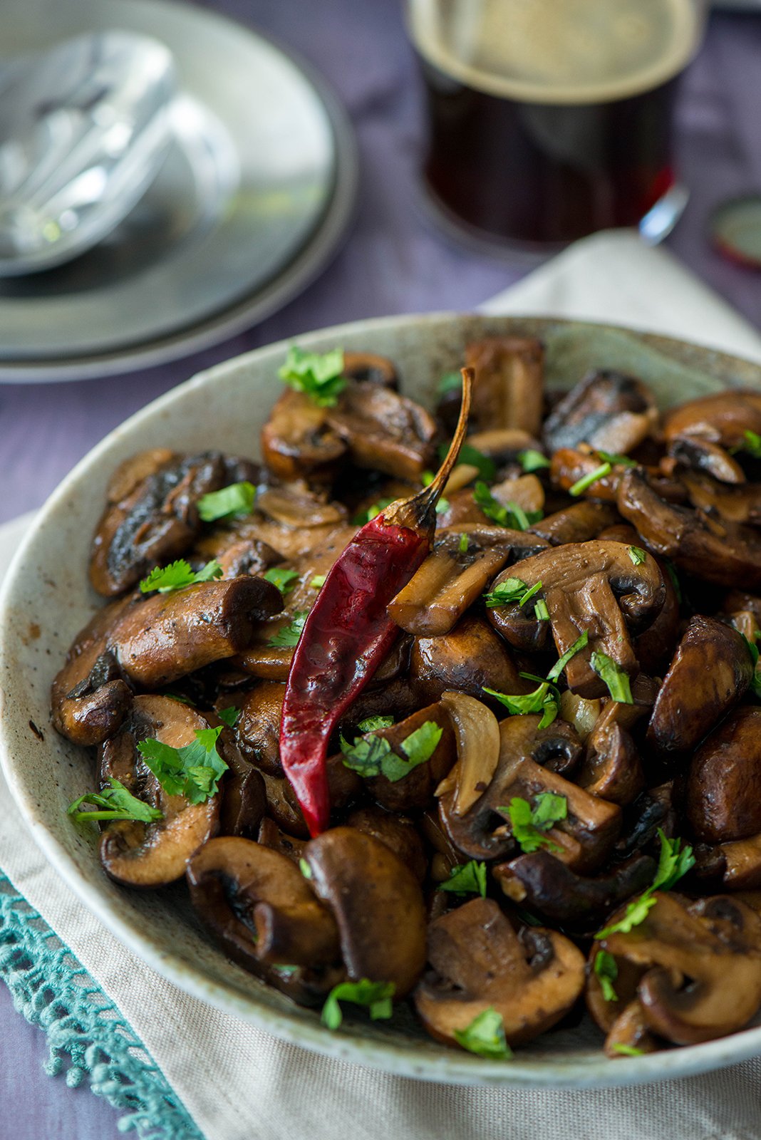 They pair perfectly with beer. The darker the beer, the better. They are versatile. You can eat them right out of the bowl or you can scoop them with tortilla chips. And best of all, they are so simple to prepare with just a few ingredients. Because mushrooms cook quickly, this flavorful appetizer is also ready in just under 15 minutes, including mushroom cleaning time.