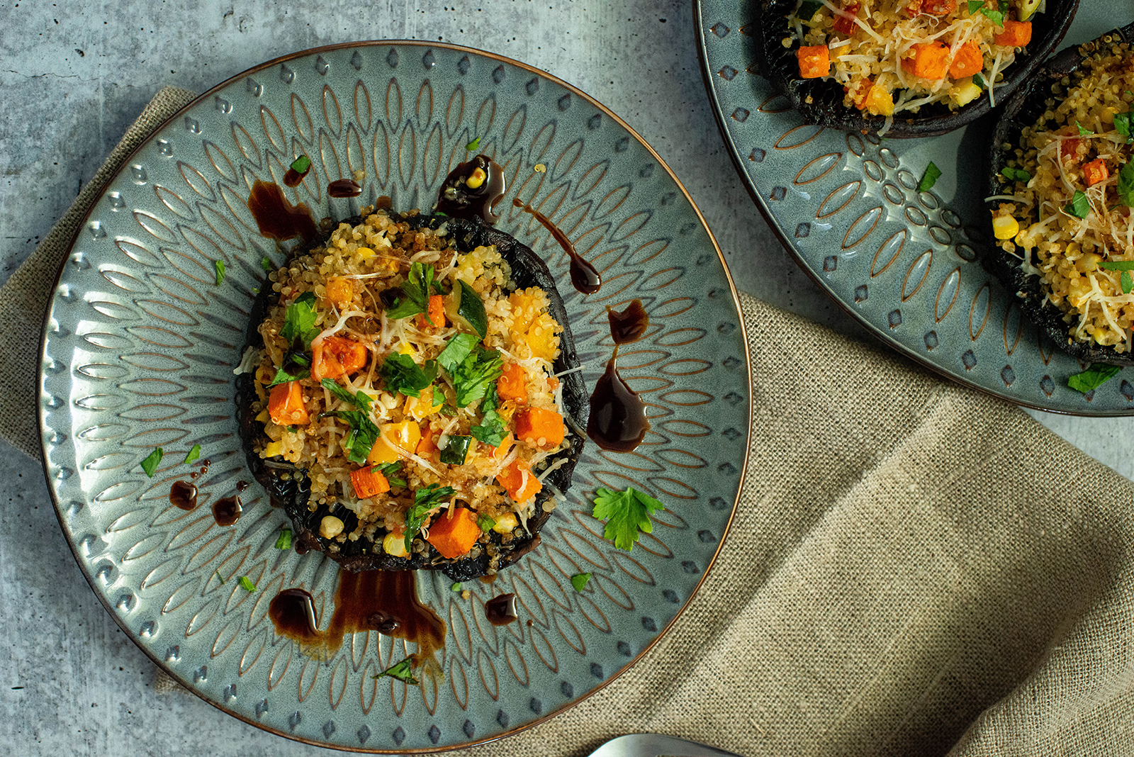Flavorful Portobello Mushroom Caps Stuffed with Colorful Veggie Quinoa