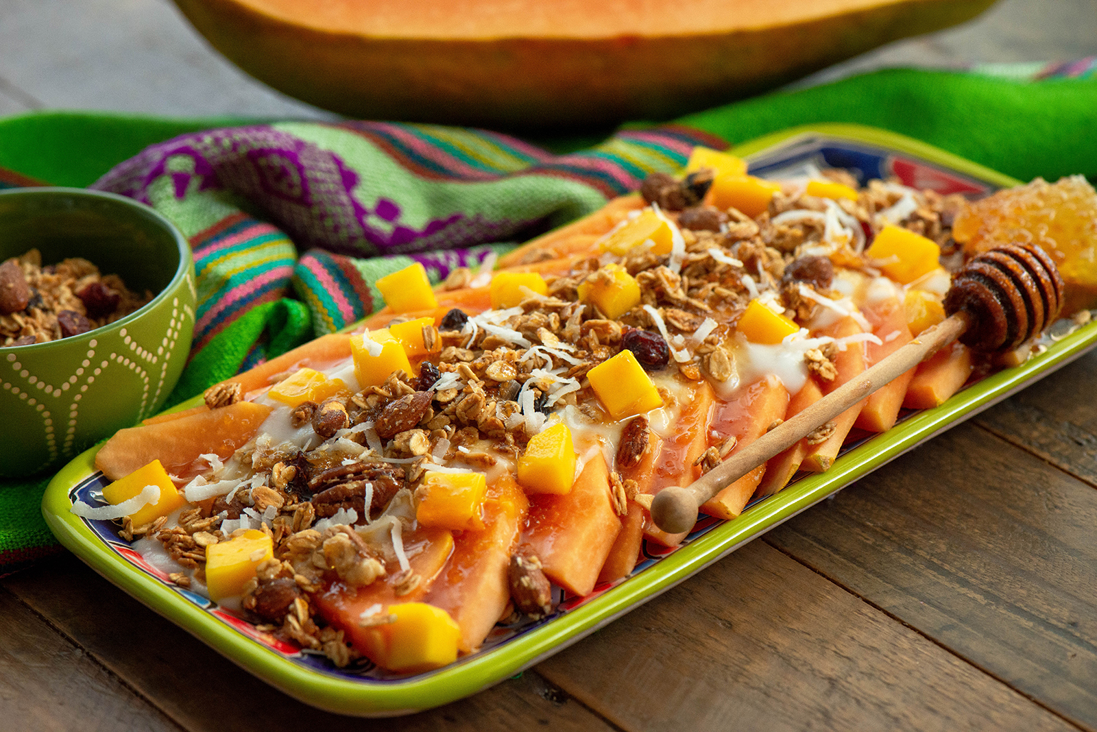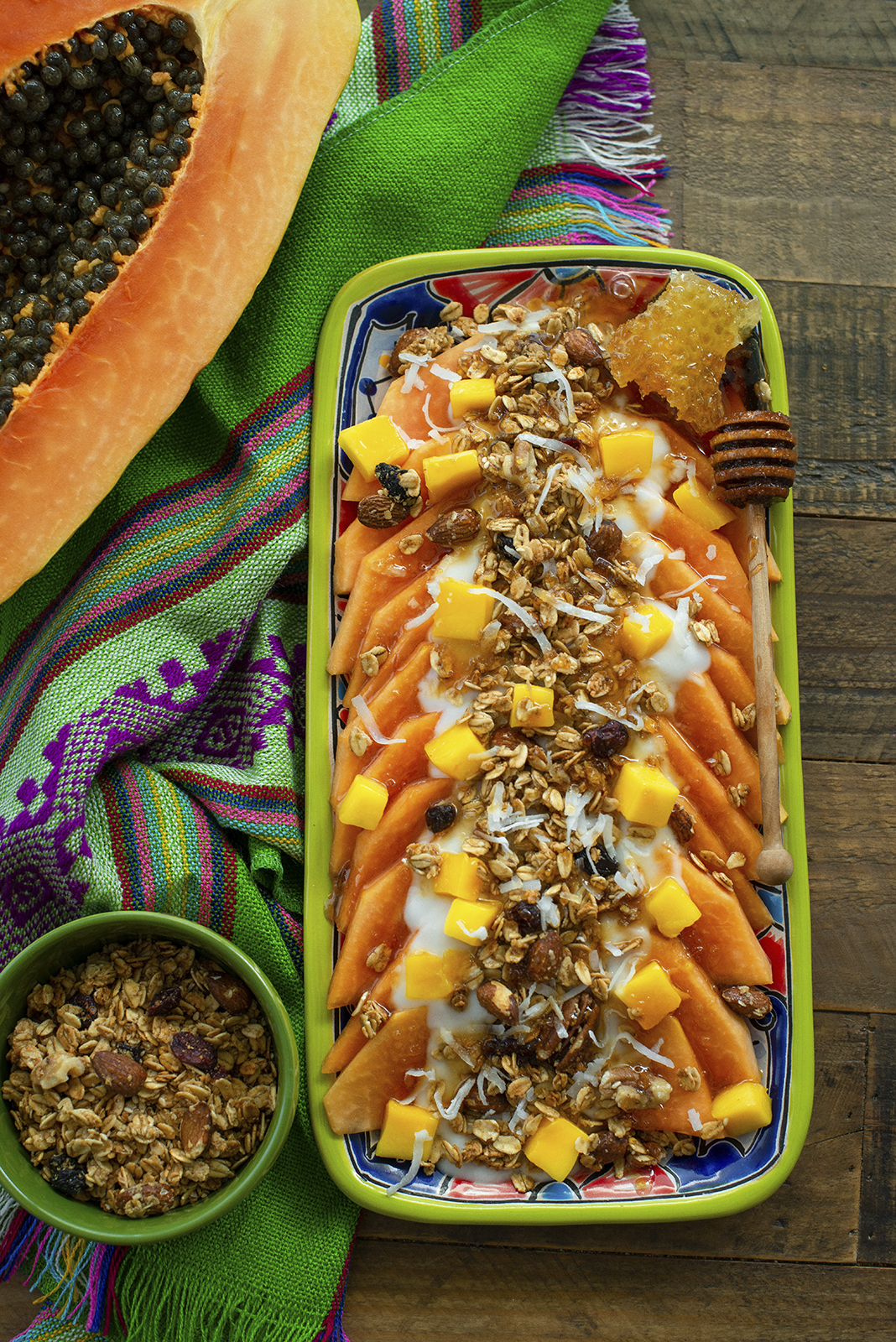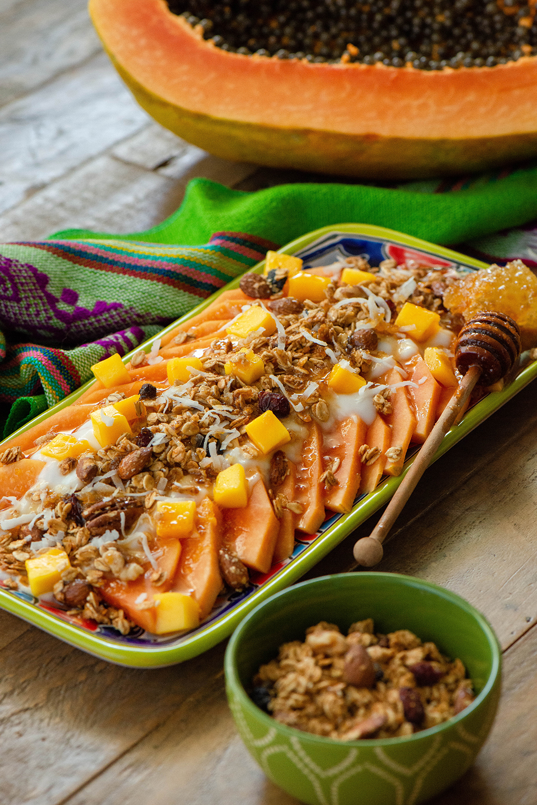 During my travels to Mexico City, Coahuila and Oaxaca, we were often presented with a tray full of their seasonal fruit, no matter where we lodged. It was all an unparalleled hospitality of relatives, hotels and restaurants. The colorful and welcoming gesture was usually accompanied by a side of plain or vanilla yogurt, their homemade granola and local raw honey. This was served before our breakfast meal. “Para abrir el apetito” (“to whet the apetite”).