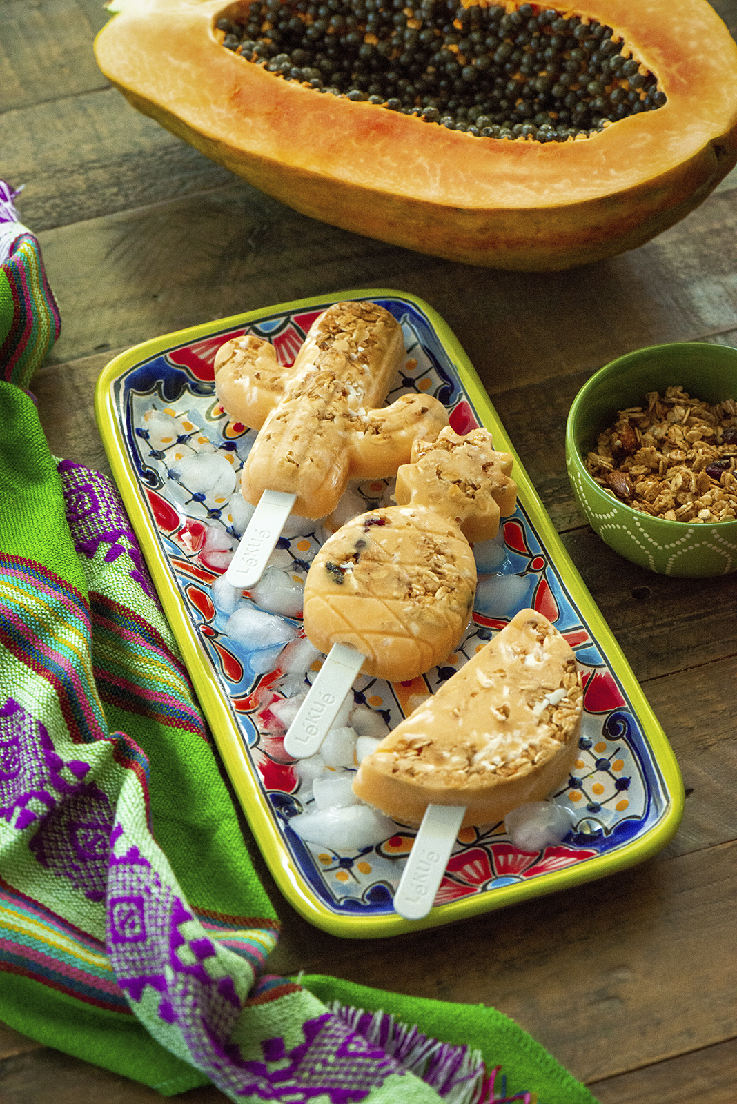 This was the perfect opportunity to make my own pre-breakfast fruit salad by using this month’s My Cajita delivery: A hand-painted talavera 12″x6″ platter and some breakfast paletas with their three Lékué BPA free silicone paleta molds.