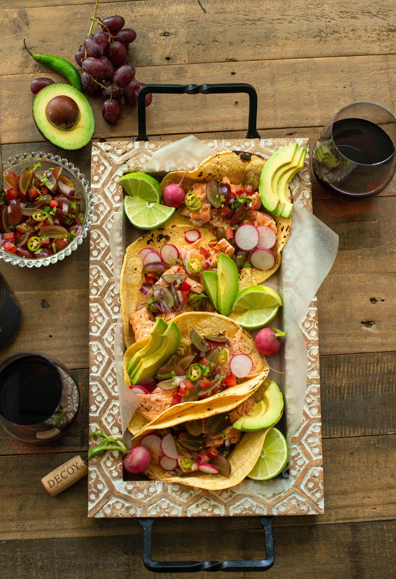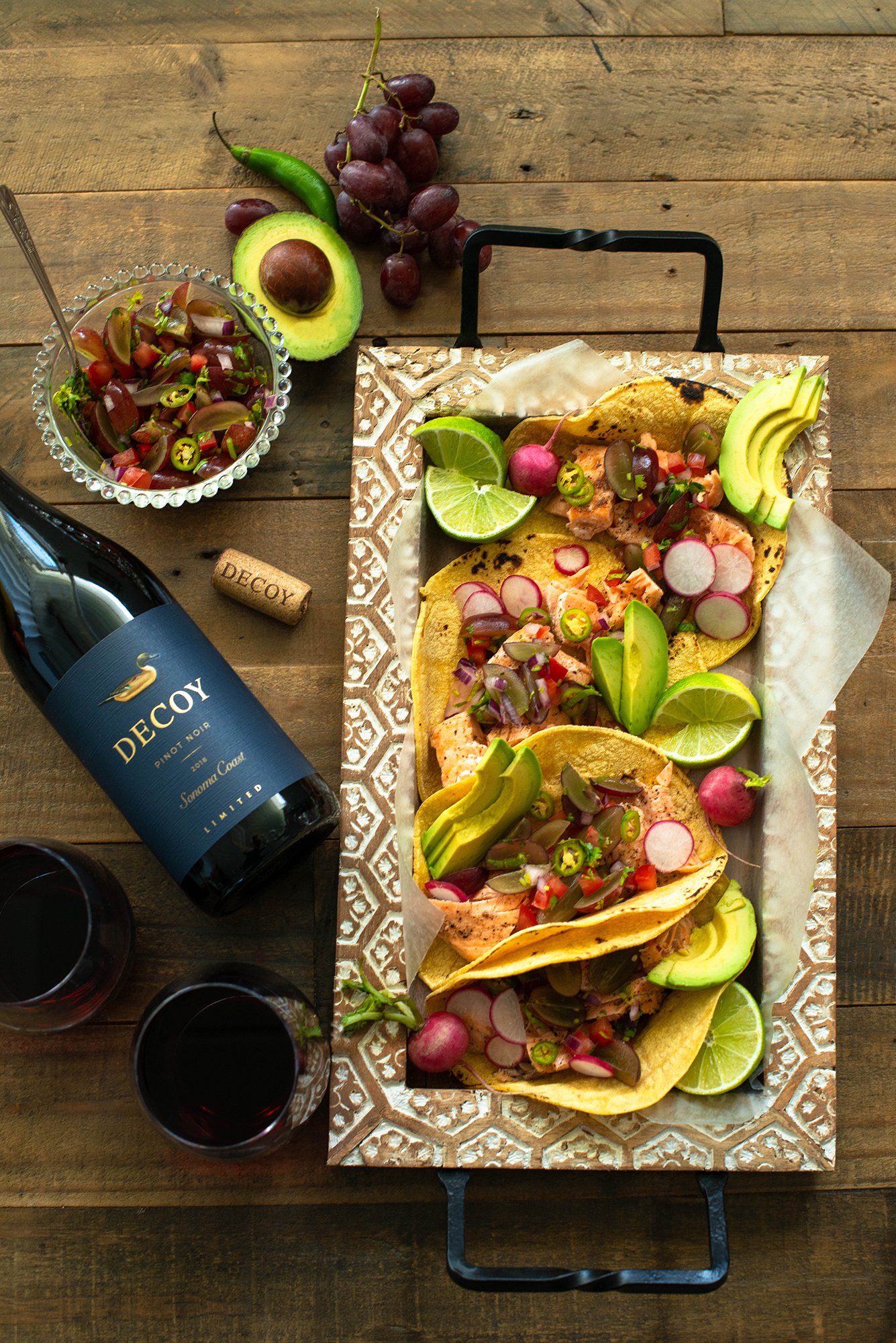 Salmon Tacos with Grape Pico de Gallo – Decoy Wine