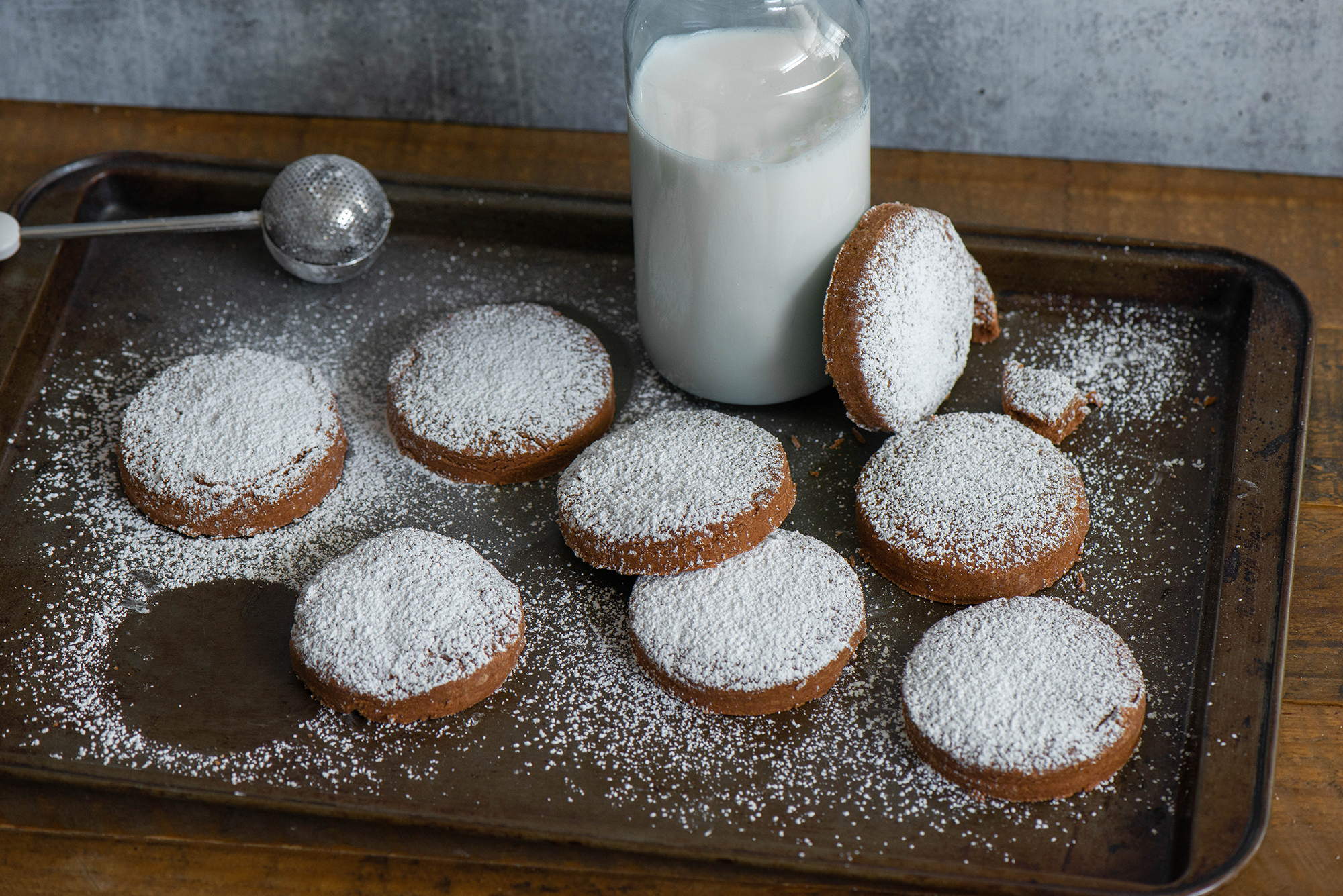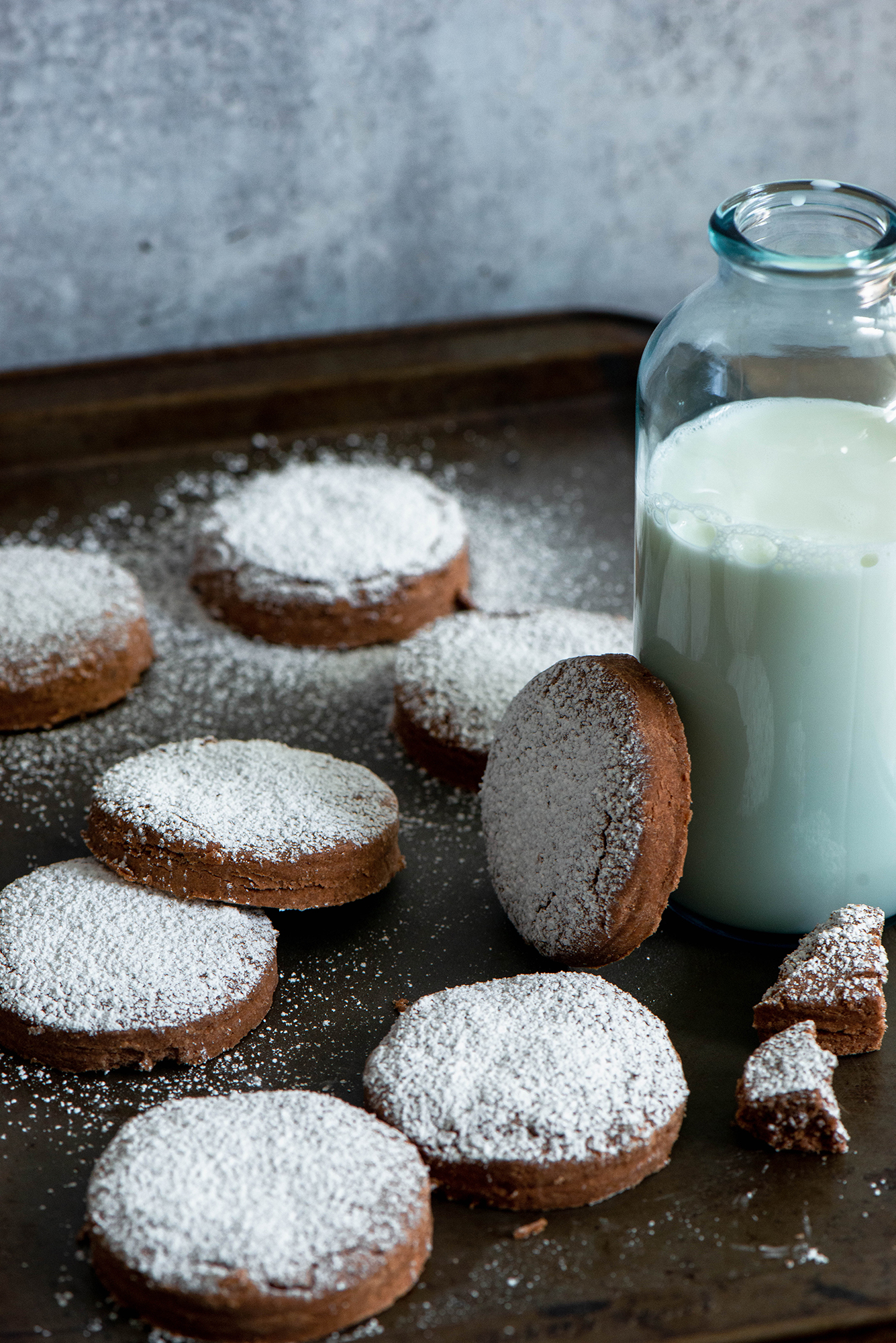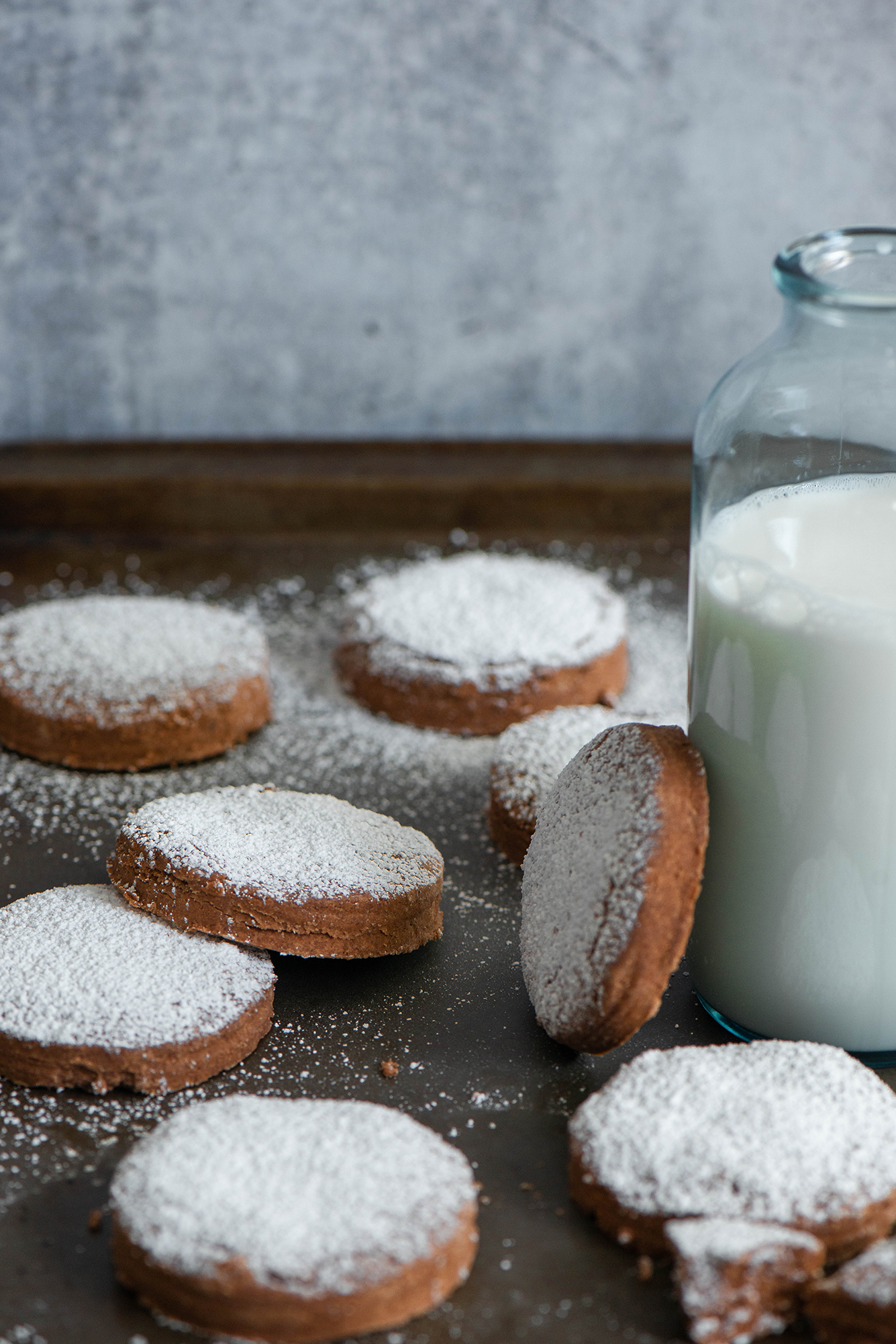 I think we can all use a cookie with a tall glass of milk right now. These are my choice: Chocolate polvorones.