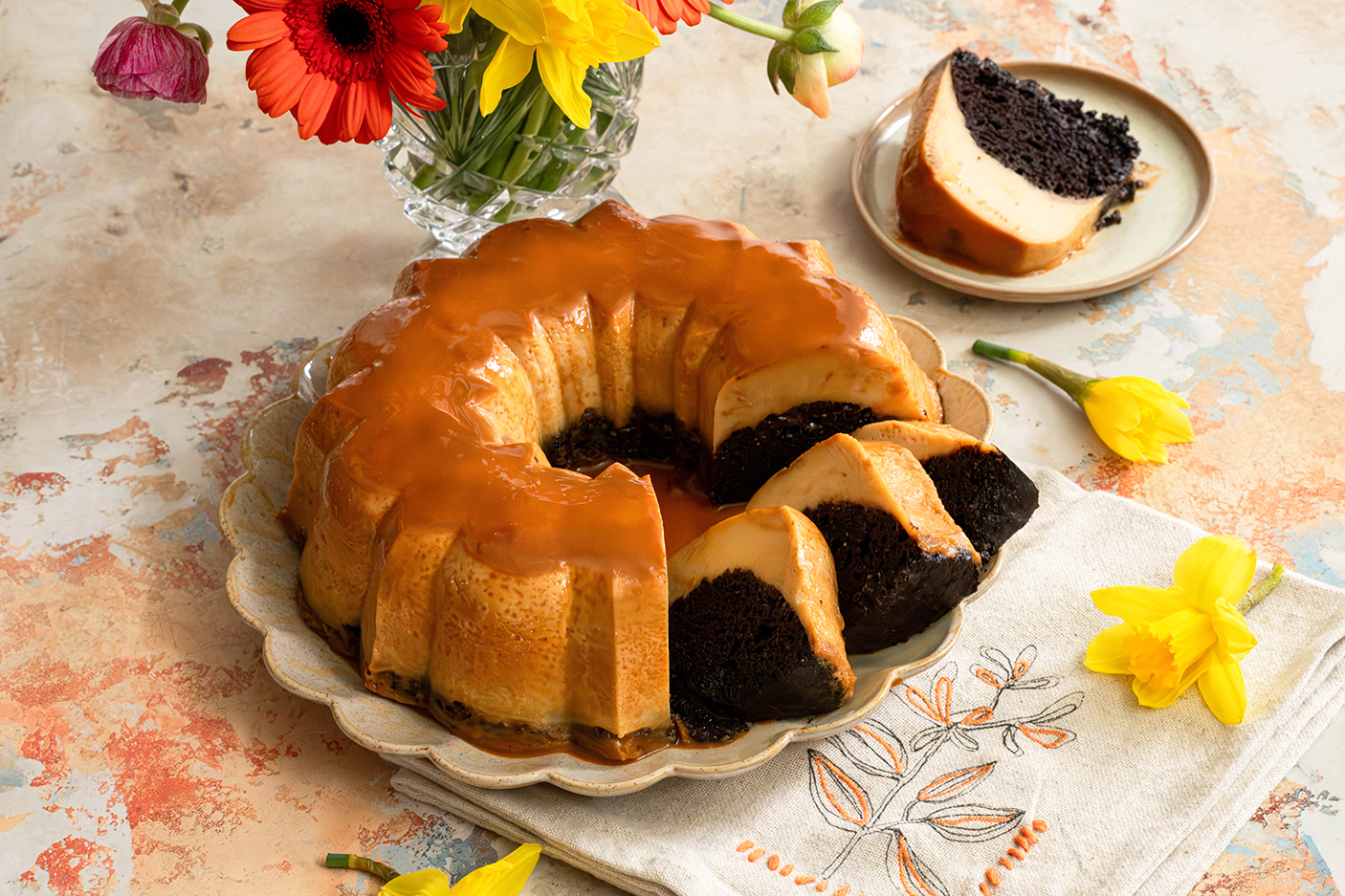 Also known as pastel imposible, this chocoflan does something unexpected. The flan and chocolate cake layers switch places as it bakes, giving you two different but perfect textures in one dessert.