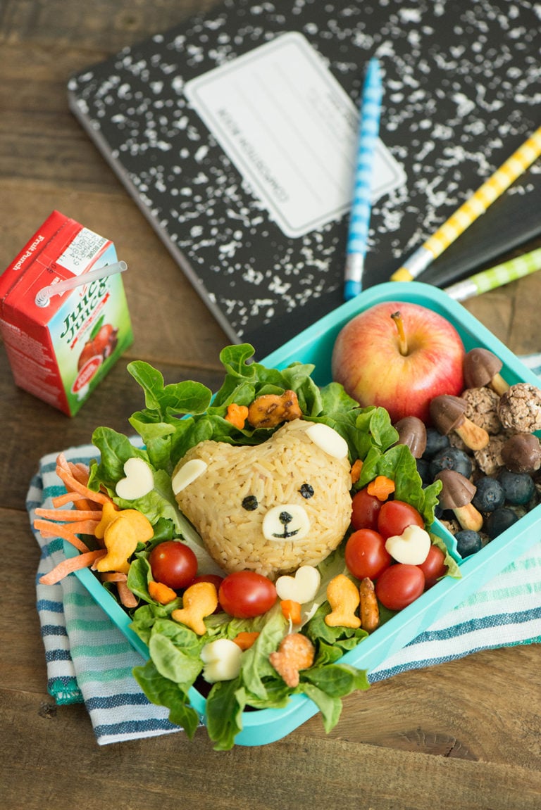 These rice balls filled with seasoned tuna are the star of a fun and colorful bento box packed with kid favorites like cheese sticks, crackers, and fruit. Portable, easy to prep, and perfectly packable.