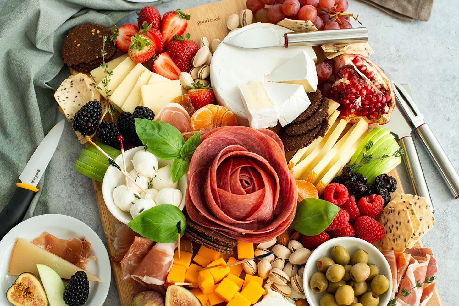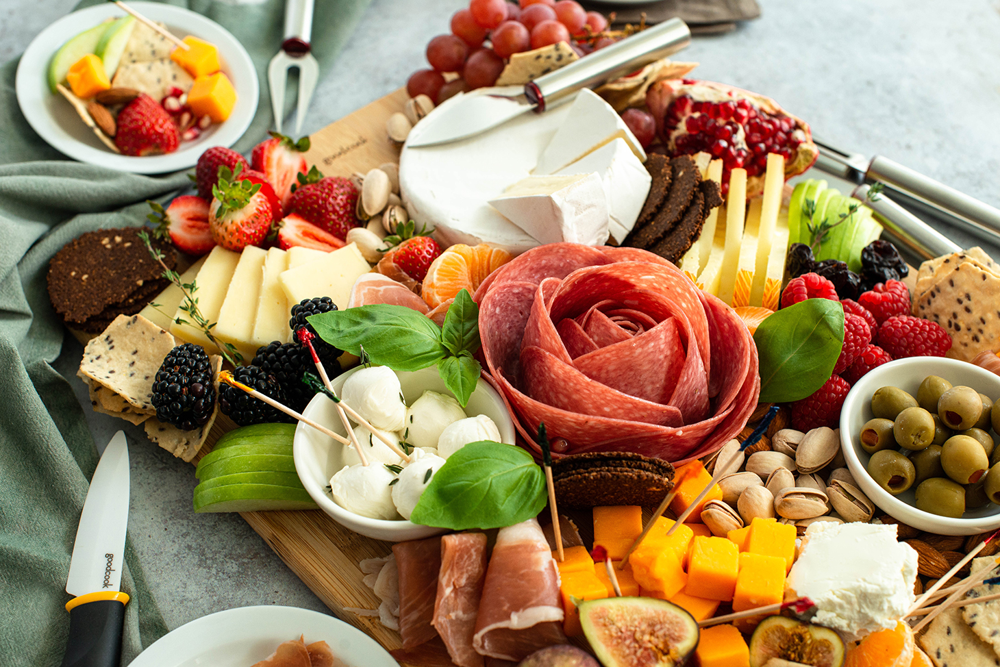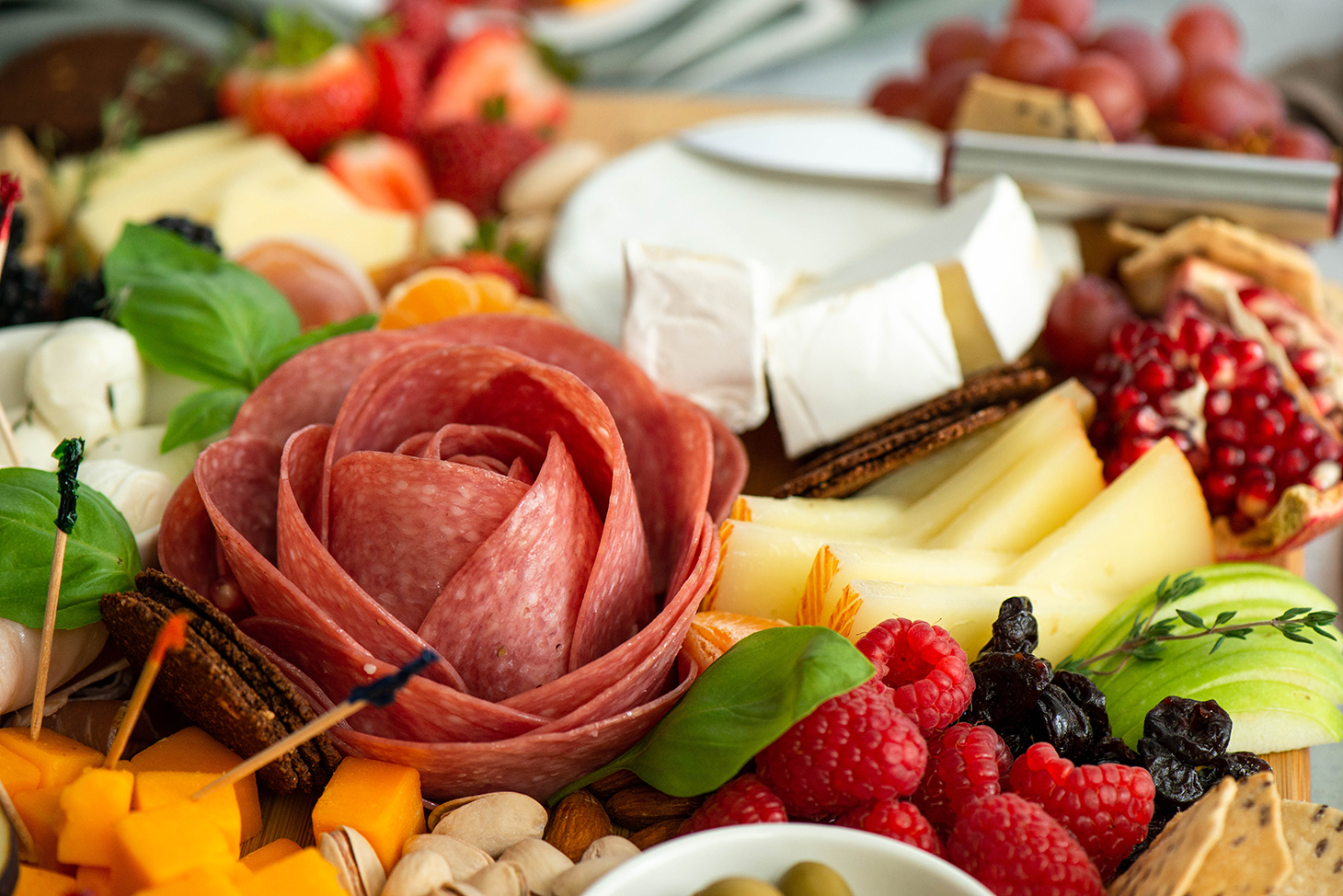 A salami rose is a charming and easy way to add a touch of flair to your summer board.