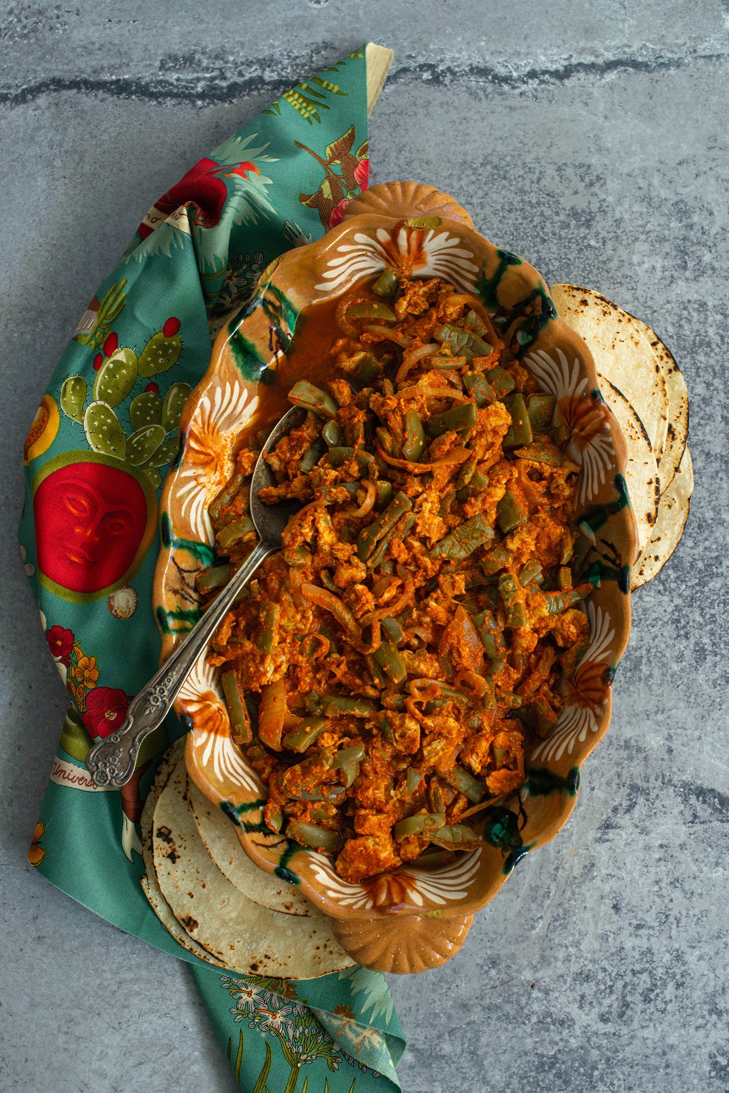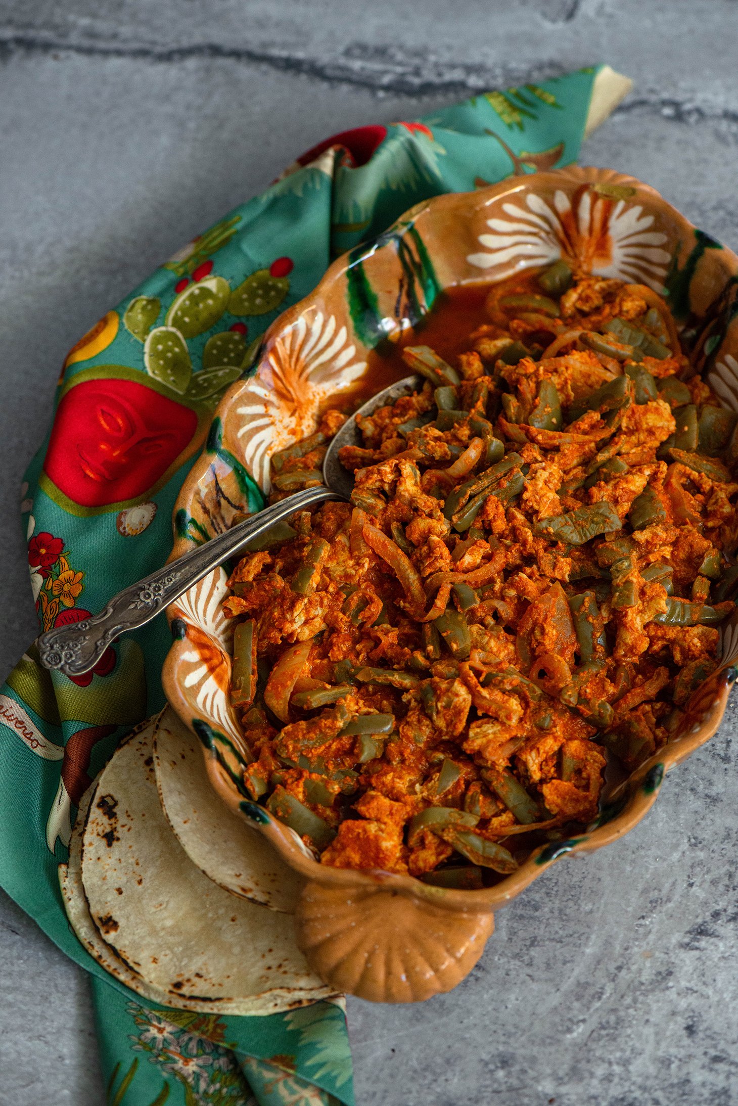 Start Your Day with Scrambled Eggs and Cactus in Red Chile Sauce