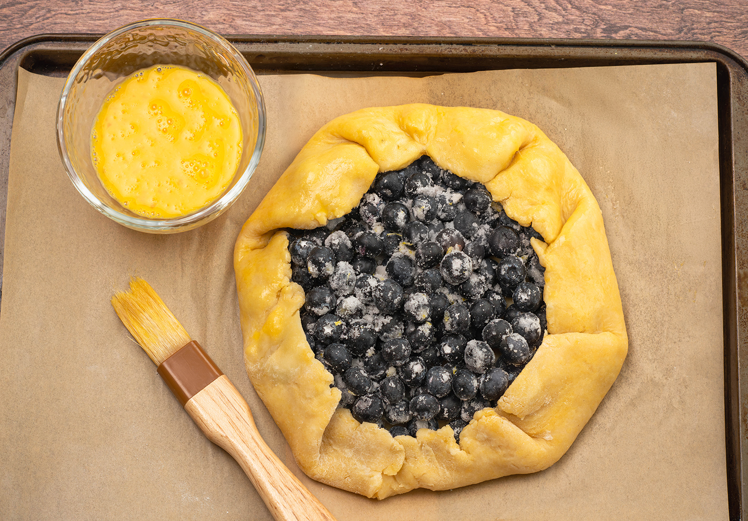 Egg adds structure and richness. While classic pie dough relies heavily on butter for flakiness, the egg helps bind the dough, making it easier to work with and less prone to cracking when you fold it over the filling. That’s especially helpful for a galette, where you’re shaping everything by hand.