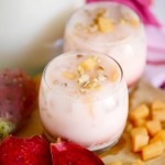 Agua de Horchata with Cactus Pear Syrup, Cantaloupe and Walnuts