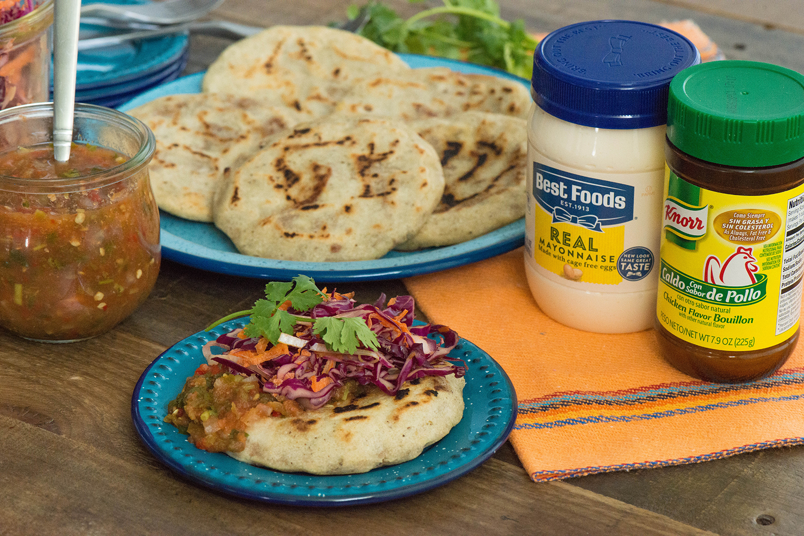 Pupusas are customarily served with curtido, pickled cabbage slaw. It can also be topped with a mild or spicy salsa. Your preference. I opted for the spicy and perfectly seasoned with Knorr® Chicken flavor Bouillon.